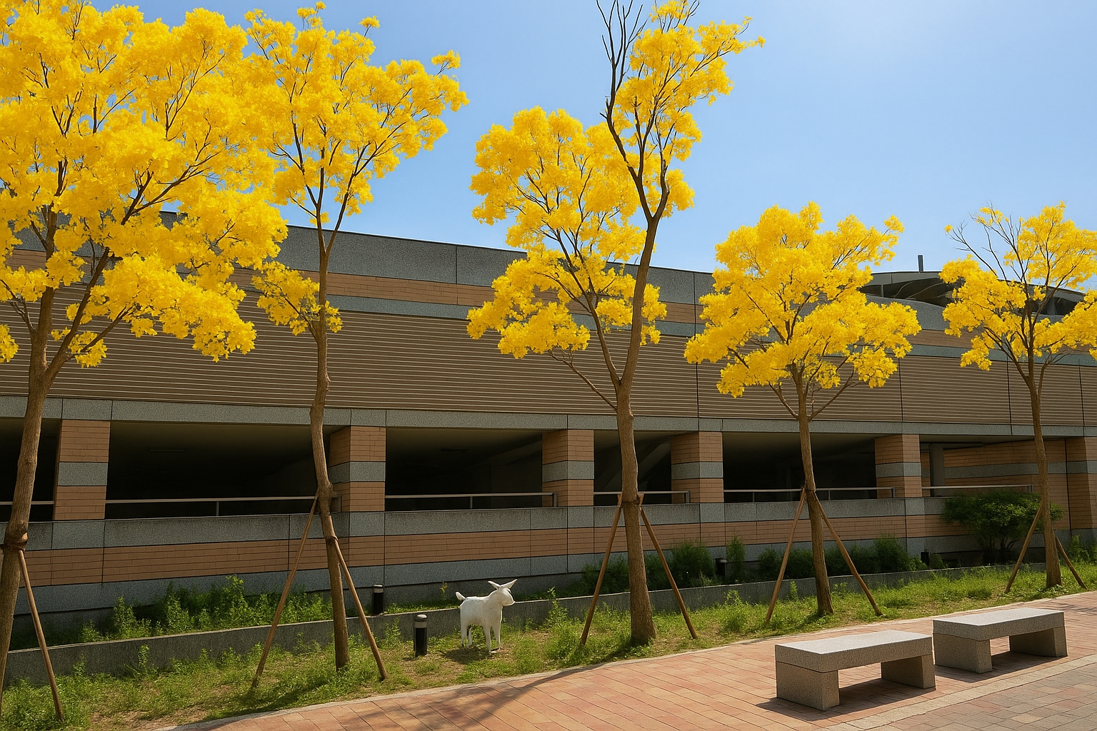 起飛的寶山鄉,不只有全球最先進的尖端科技製程,同時也兼顧生態環境與景觀美化,寶山鄉長邱振瑋推動在學府路種植超過50棵黃花風鈴木,預期未來花季可展現壯觀景象,呈現金黃燦爛主題的通學與休閒步道。