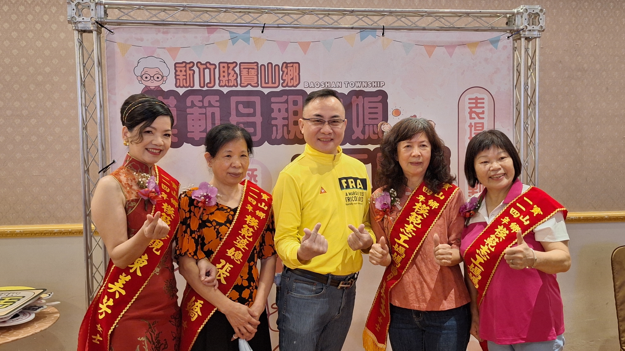 五月感恩季,寶山鄉公所感恩默默付出的模範母親、模範婆媳及無私奉獻的模範志工媽媽, 3日(星期六)上午10時在龍湖宴會館舉辦「新竹縣寶山鄉114年模範母親婆媳暨志工媽媽表揚活動」,現場除了致贈牌匾及禮品,敬邀各受獎家庭齊聚一堂,席開32桌慶祝母親佳節。