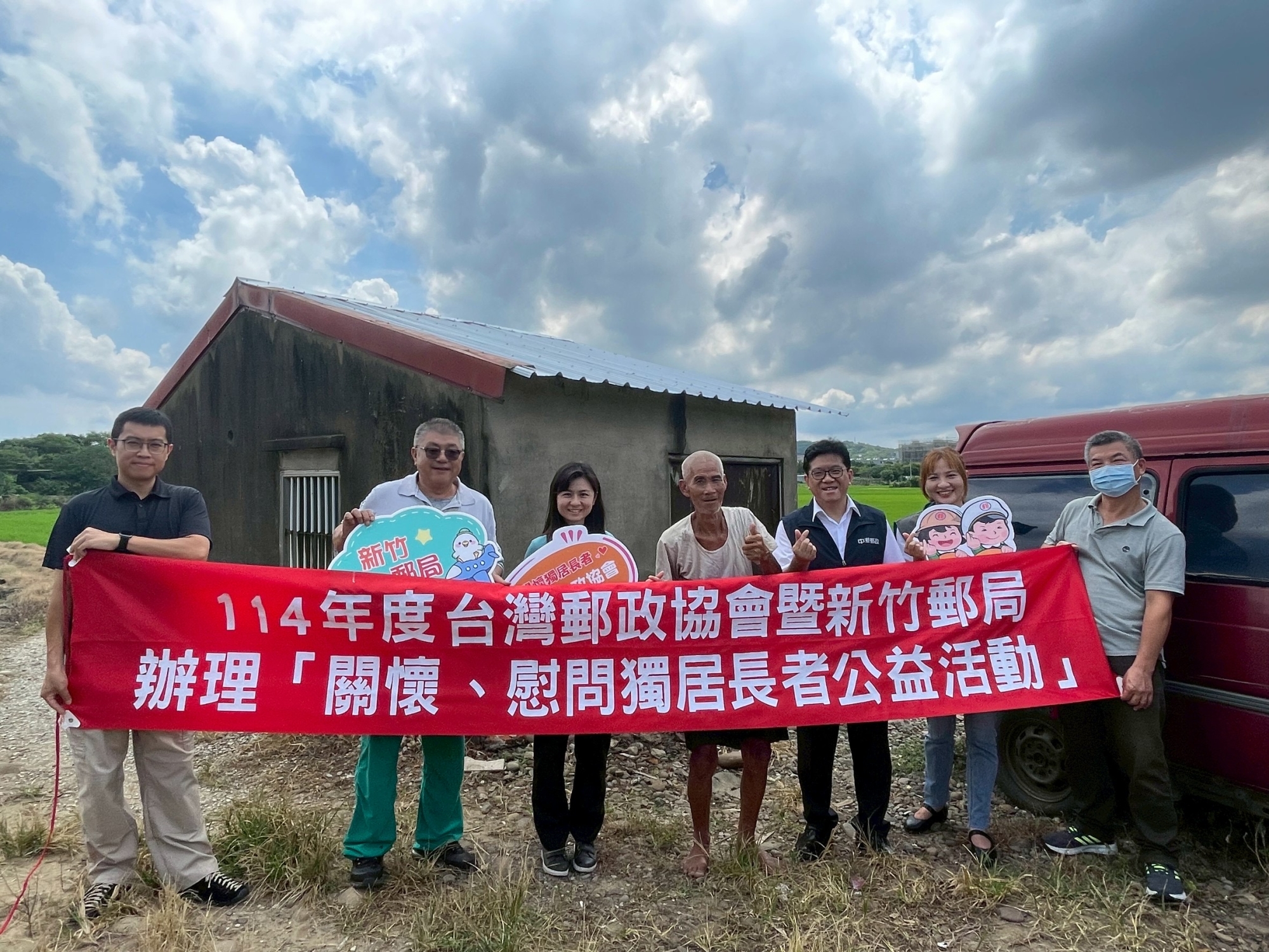 今(11)日上午10時由新竹郵局局長吳進益帶領郵務單位同仁,攜帶伴手禮前往新埔鎮關懷探視獨居長者。林爺爺,今年77歲,長年獨自一人住在一間老舊農舍中,長期面臨無電可用、生活不便的困境。新埔郵局的梁稽查在投遞郵件過程中發現林爺爺的生活困境,立即主動通報,促成此次關懷公益活動。