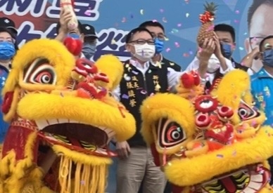 議長張鎮榮以雙獅祝福鄉親事事如意 何高祿攝