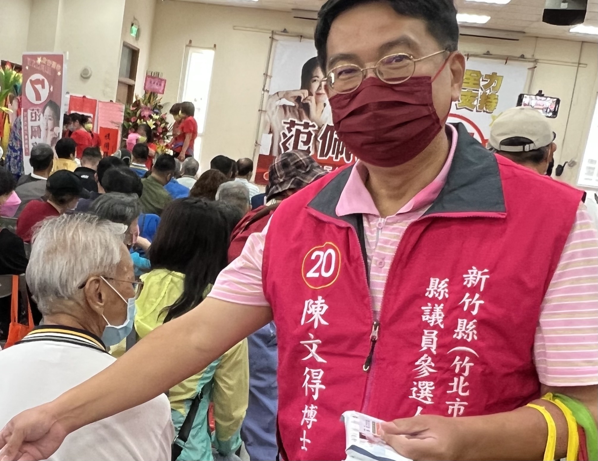 候選人登記第20號的陳文得表示,他期盼大家能夠給他更多的資源來為民服務,也就因為希望能夠協助更多人事物,才會這樣兩屆繼續堅持參選。他說只有像文得這樣數十年以來,誠懇地聽著每一位需要幫助的聲音,為了每一位渴望得到協助的需求努力奔走,才是真正能夠深耕在地,為大家打拼的竹北市選區縣議員。
