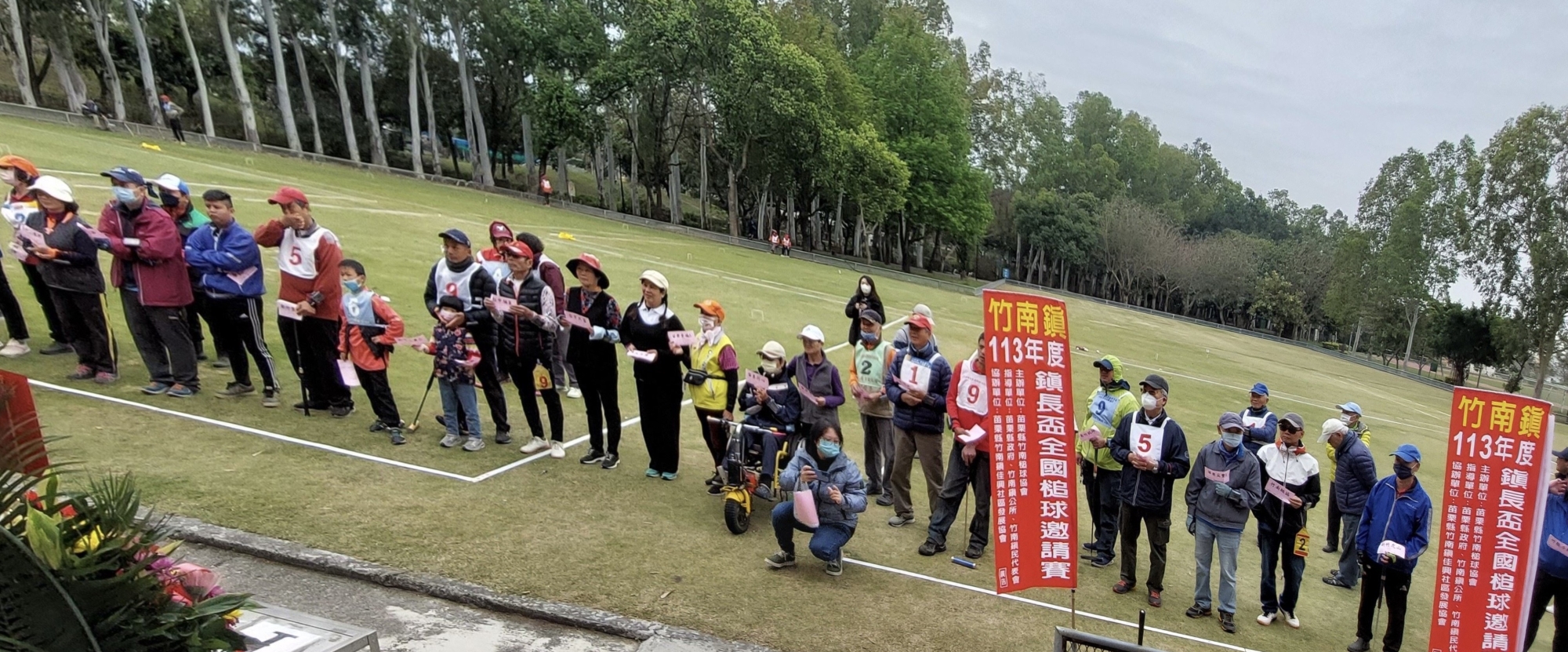 竹南鎮113年鎮長盃全國槌球邀請賽,10日上午在竹南運動公園槌球場開打,計有60隊約500名來自全國各地愛好槌球好手參加,副縣長鄧桂菊到場加油打氣,並期勉選手們發揮實力,以球會友切磋球技,個個揮出好成績也打出活力與健康。