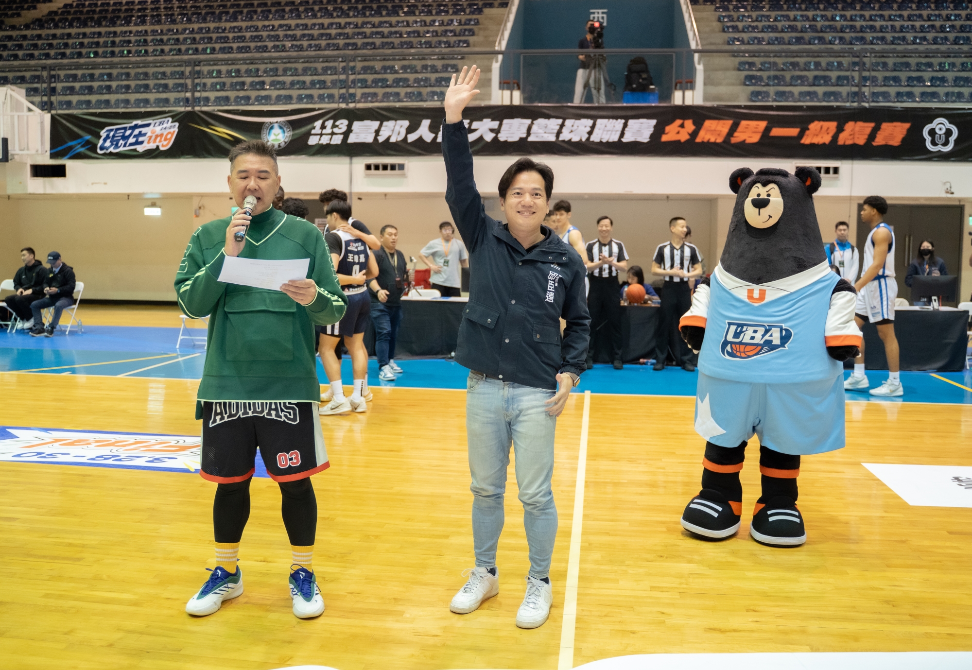 中華民國大專院校113學年度籃球運動聯賽(UBA),公開男生組第一級8強複賽,於28日至3月2日在新竹市立體育館盛大登場。代理市長邱臣遠今(2)日到場為賽事開球,象徵著UBA進入最激烈的競爭階段,同時展現新竹市政府對體育賽事的高度支持,並向大專體總會長王淑音及副會長何建德表達感謝。
