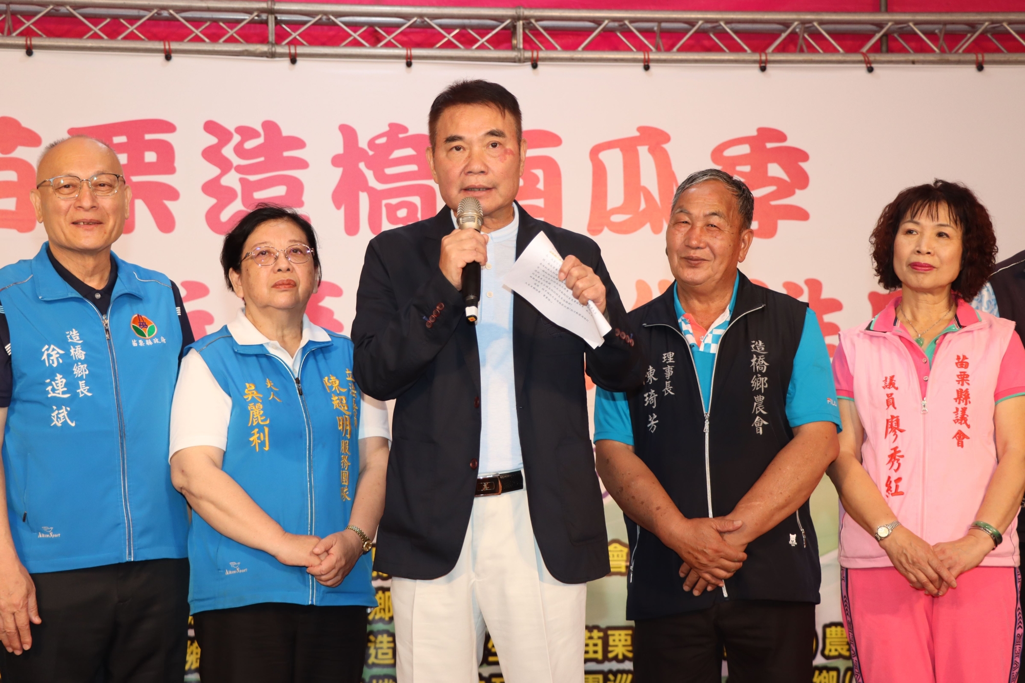 今天登場的造橋南瓜季活動,由縣長鍾東錦、立委陳超明夫人吳麗利、農糧署北區分署長林傳奇、縣議員廖秀紅、陳碧華、廖英利、邱毓興及林寶珠、鄭秋風秘書、造橋鄉長徐連斌、縣農會總幹事鍾金光、造橋鄉農會理事長陳琦芳、常監廖永善、總幹事吳美慧、縣府農業處長陳樹義等人共同啟動,歡迎全國民眾到造橋鄉體驗南瓜產業的魅力及田野風光。