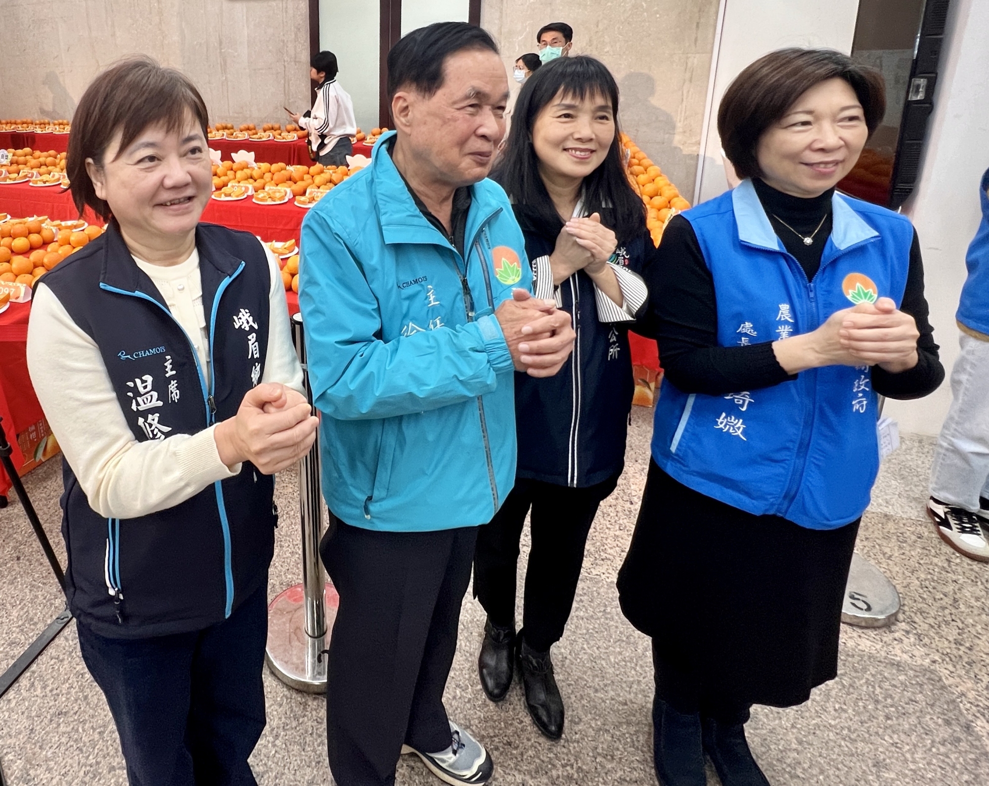 竹縣農業處長傅琦微和柑桔主要產區峨眉鄉峨眉代理鄉長田昭容、鄉代會主席温修汝,全部盛裝出席大力推廣美味可口農產品表示,評鑑邀請農業相關單位專家擔任評審,依果形外觀、糖度、肉質及口感風味等項目進行綜合評分。參賽果品皆須符合嚴格規範,包括果形外觀整齊、大小一致、無病蟲害,並通過農藥殘留檢驗,以確保品質與食用安全。