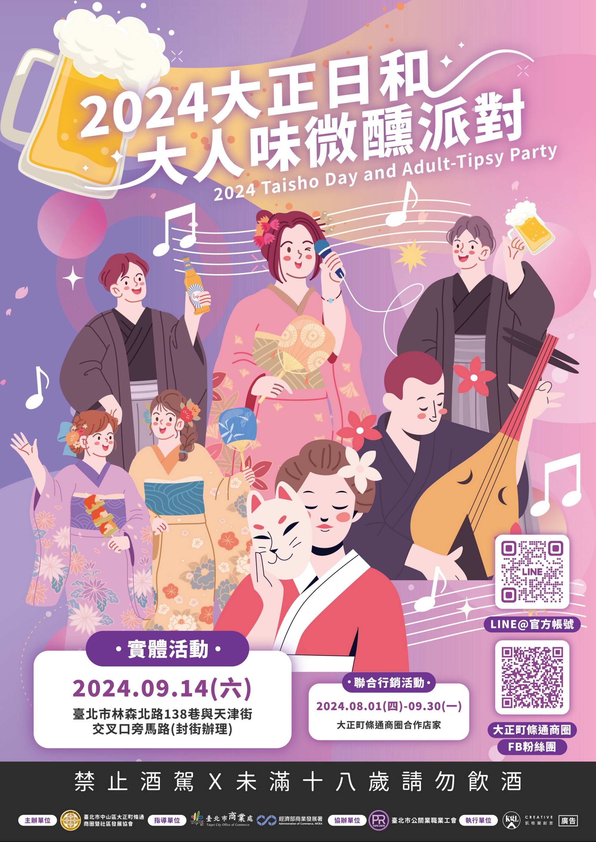 大正町條通商圈除了美女多外,居酒屋酒吧也多,臺北市中山區大正町條通商圈暨社區發展協會舉辦「2024大正日和:大人味微醺派對」,特地為大家打造浪漫指數100分的露天戶外酒吧。