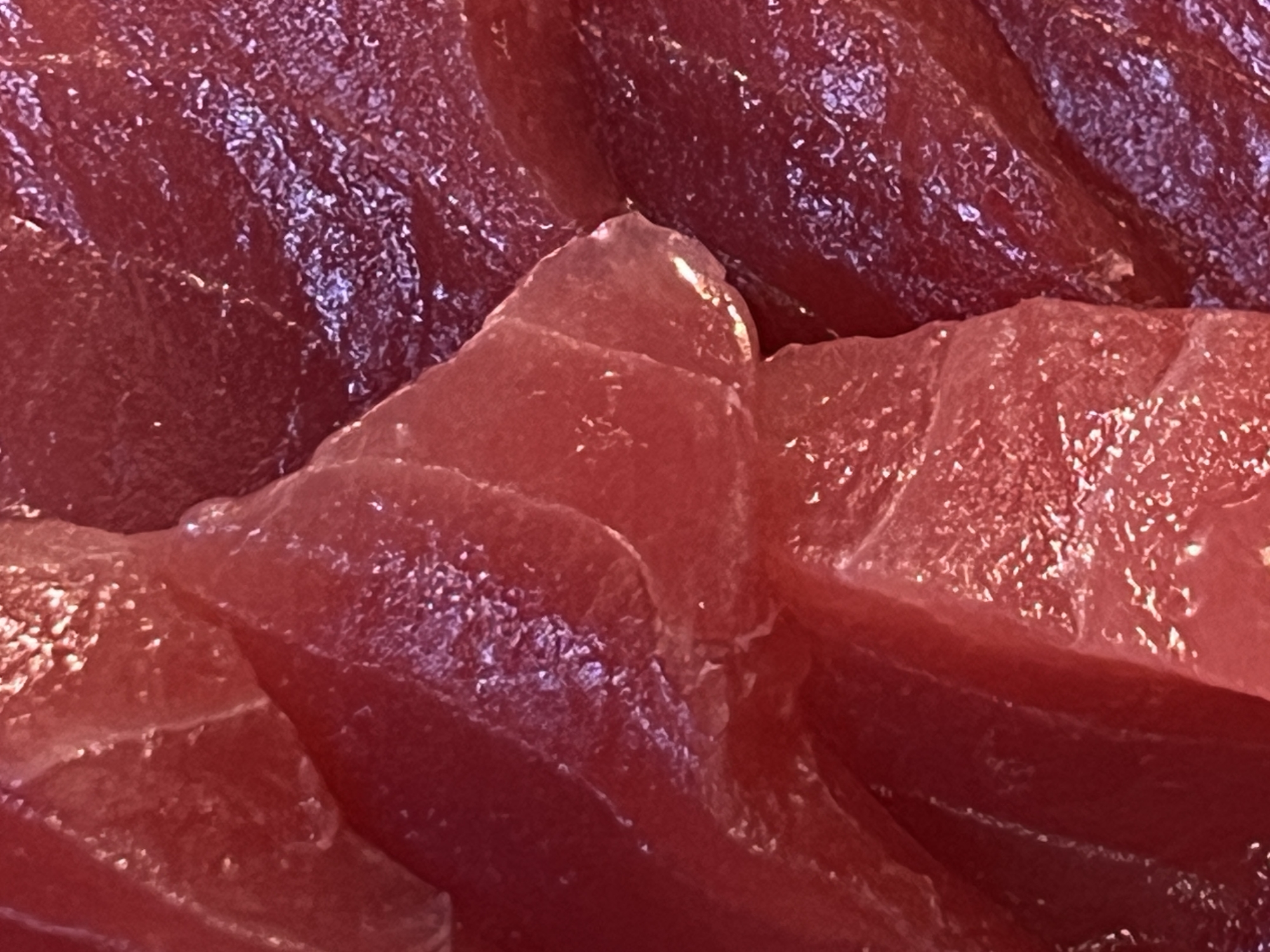 其實生魚片好壞,很容易識別,大致可以用魚肉的顏色區分為紅和白兩種。紅肉常見鮭魚和鮪魚,白肉以鯛魚居多,紅肉比較容易識別鮮度,由鮮紅轉成深紅,甚至有些黑色浮現,即是失去鮮度。