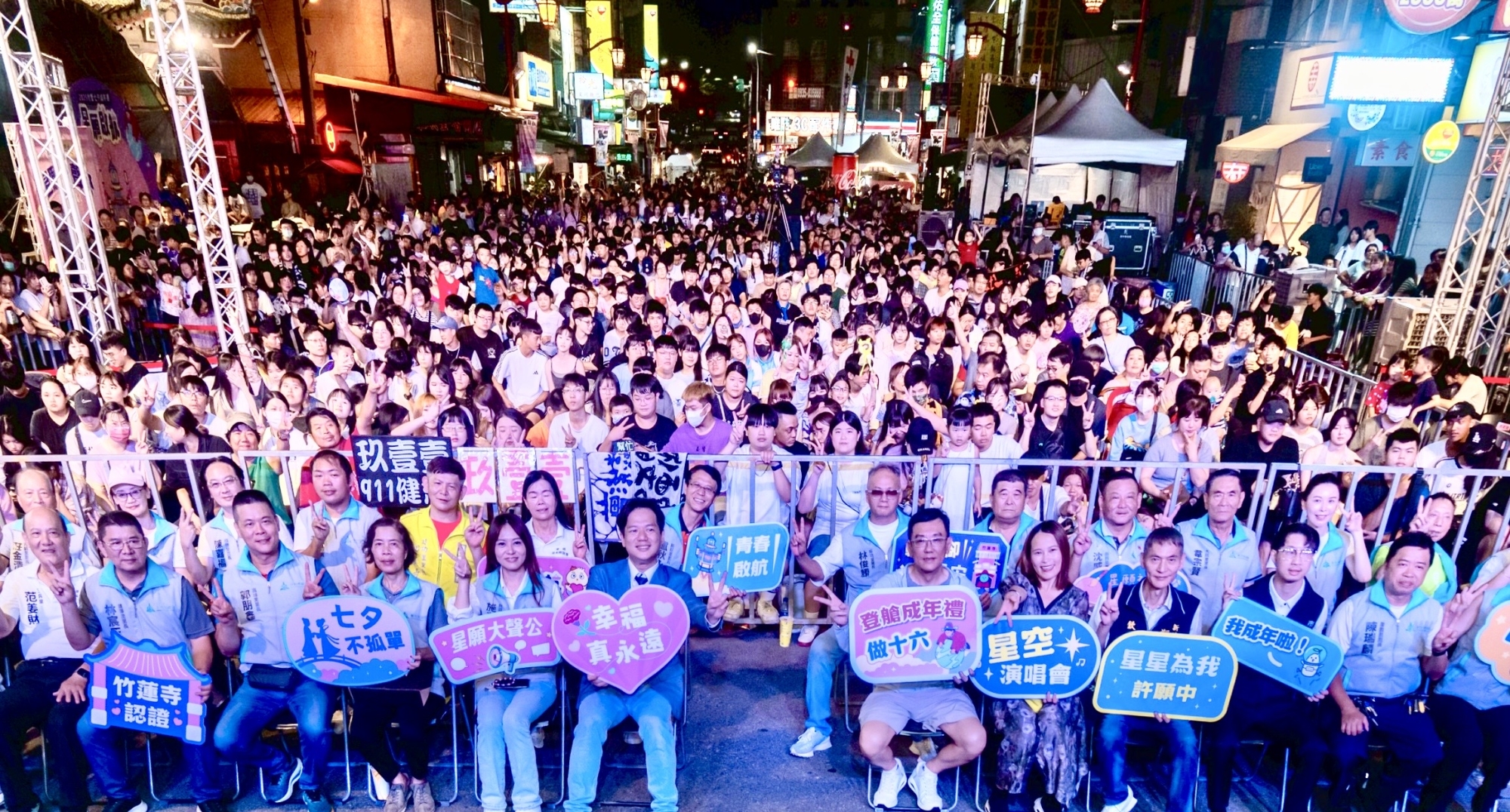 竹市府攜手竹蓮寺及竹蓮文化基金會盛大舉辦2025七夕成年禮活動,今(29)日晚間於竹蓮寺舉行「星空演唱會」,邀請玖壹壹、怕胖團、楊淨宇、HotStar等知名歌手與樂團輪番演出,帶來多元曲風與精采演出,代理市長邱臣遠與竹蓮寺主委許修睿一同到場,與市民共度浪漫七夕情人節夜晚。