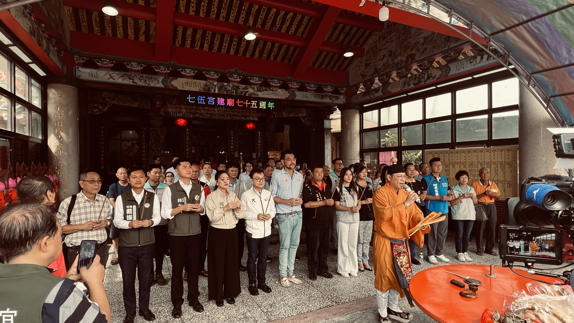 七伍宮主委王泰山接獲王爺感應,指示大建平安福醮,外界認為單憑這麼一個300多戶小聚落不可能完成建醮大事,今天上午, 王泰山開記者會當著新竹市民政處長施淑婷及產業發展處長嚴翊琦的面,正式宣佈11月17日搭醮壇,要凝聚小聚落之力,完成三天三夜法會,答謝七伍王爺庇佑眾生。