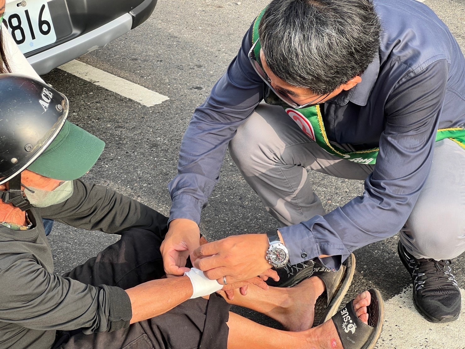 劉建國拜票遇民眾車禍暖心包紮傷口 民眾大讚暖男縣長