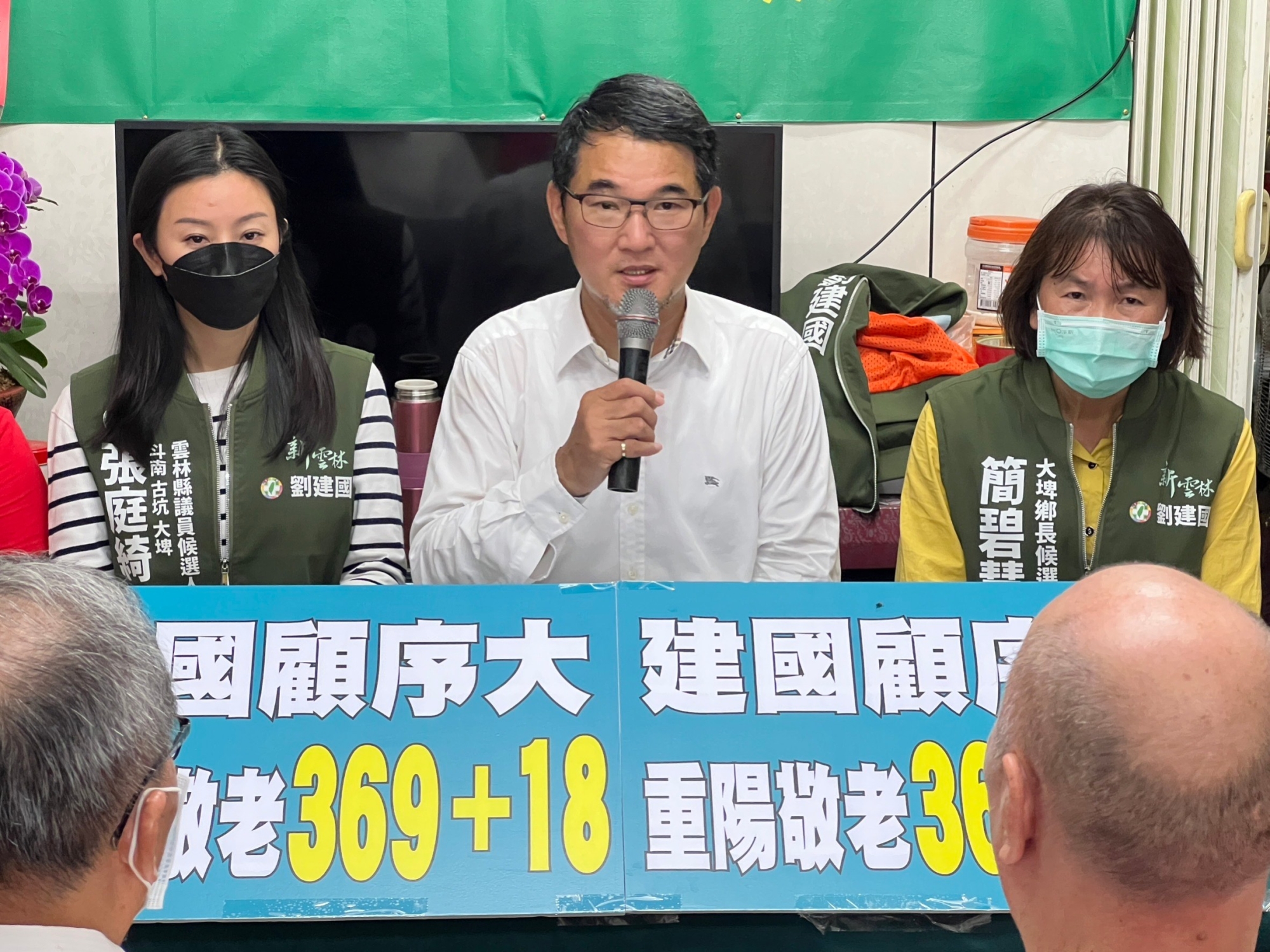 劉建國表示雲林縣111年預算歲入366億6,363萬元,112年歲入356億 5,900萬,所提出的重陽敬老金369+18政策,經費預算概估5.28億元,會比目前政策多出近2.5億元,劉建國說只要減少一些不必要活動與張麗善個人形象置入經費,相信縣庫財政絕對有辦法支應且綽綽有餘。
