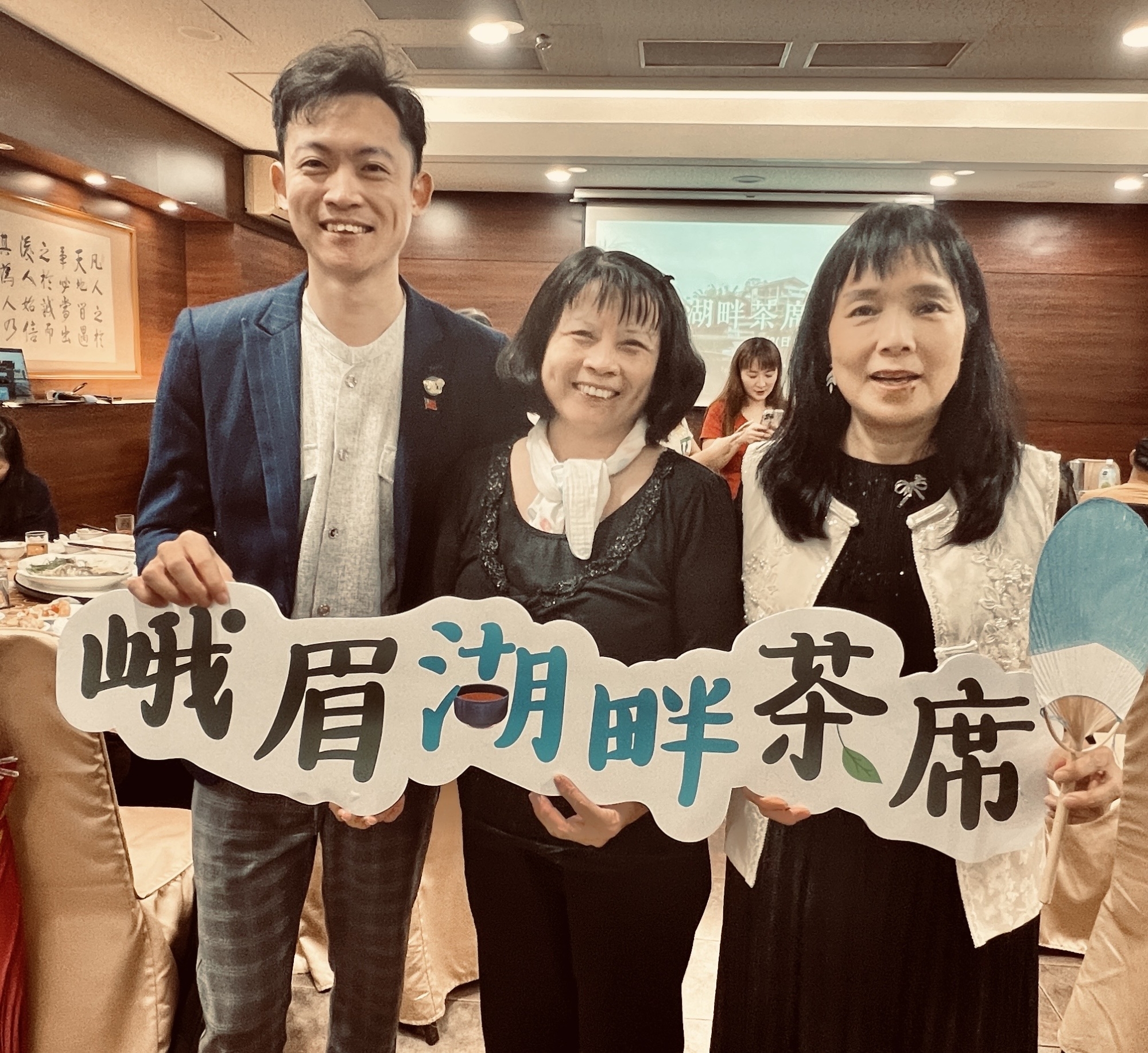 田昭容(右)和峨眉觀光茶行東家母子(中、左)行銷地方產業 何高祿攝