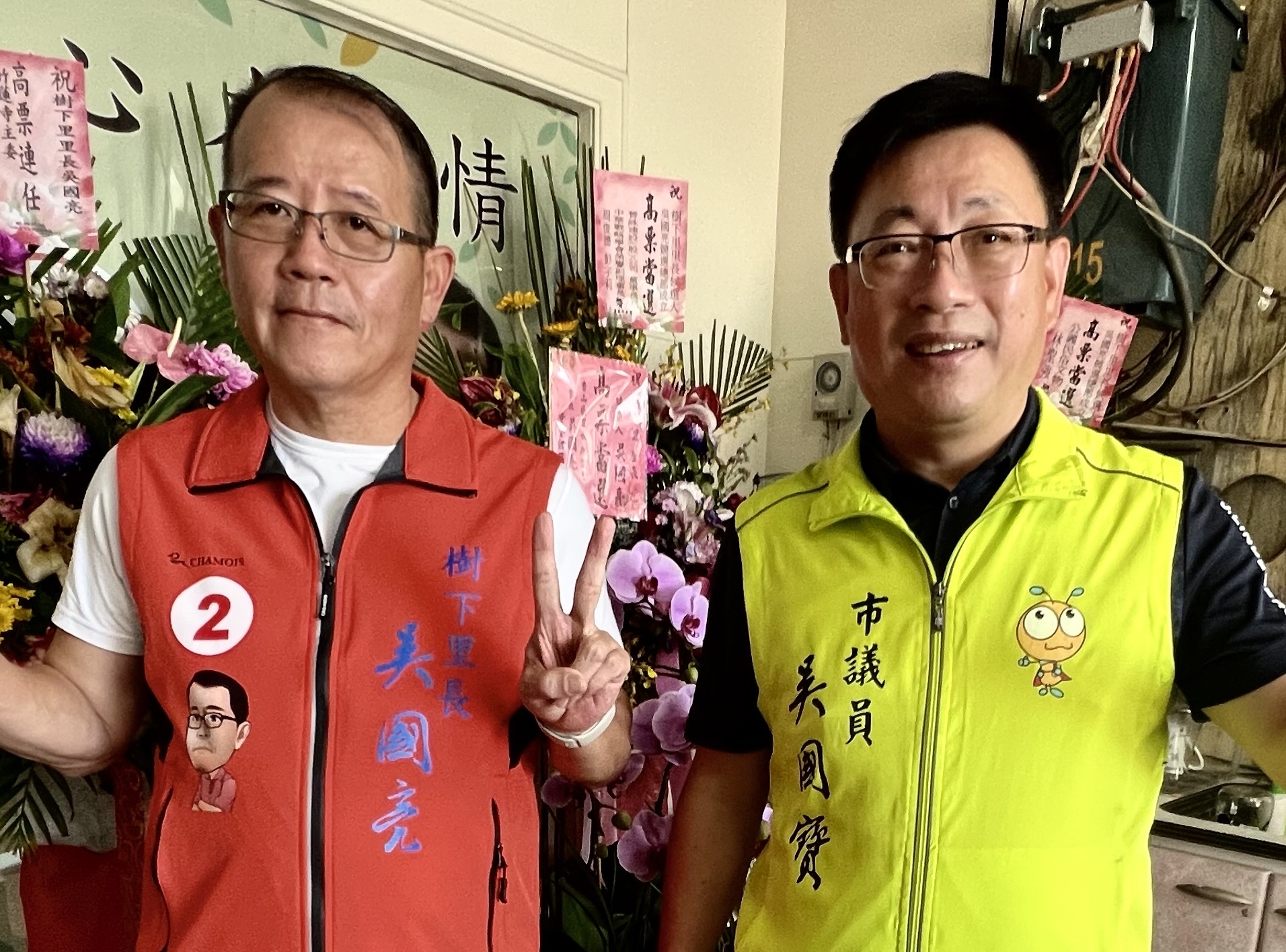 吳國亮參選香山區樹下里長抽籤2號,爭取連任,吳國亮的兄長,是新竹市香山區角逐連任市議員魃候選人5號吳國寶,經常到社區長輩共餐廚房探班,捐贈加菜金,加上也有其他善心人士捐贈經費支助,提昇了菜色多樣化,內容相當豐富遠遠超越一般的飯包,遇到年節菜色更不用說,受到社區和鄰里嘉許稱讚,被視為共餐示範樣本。
