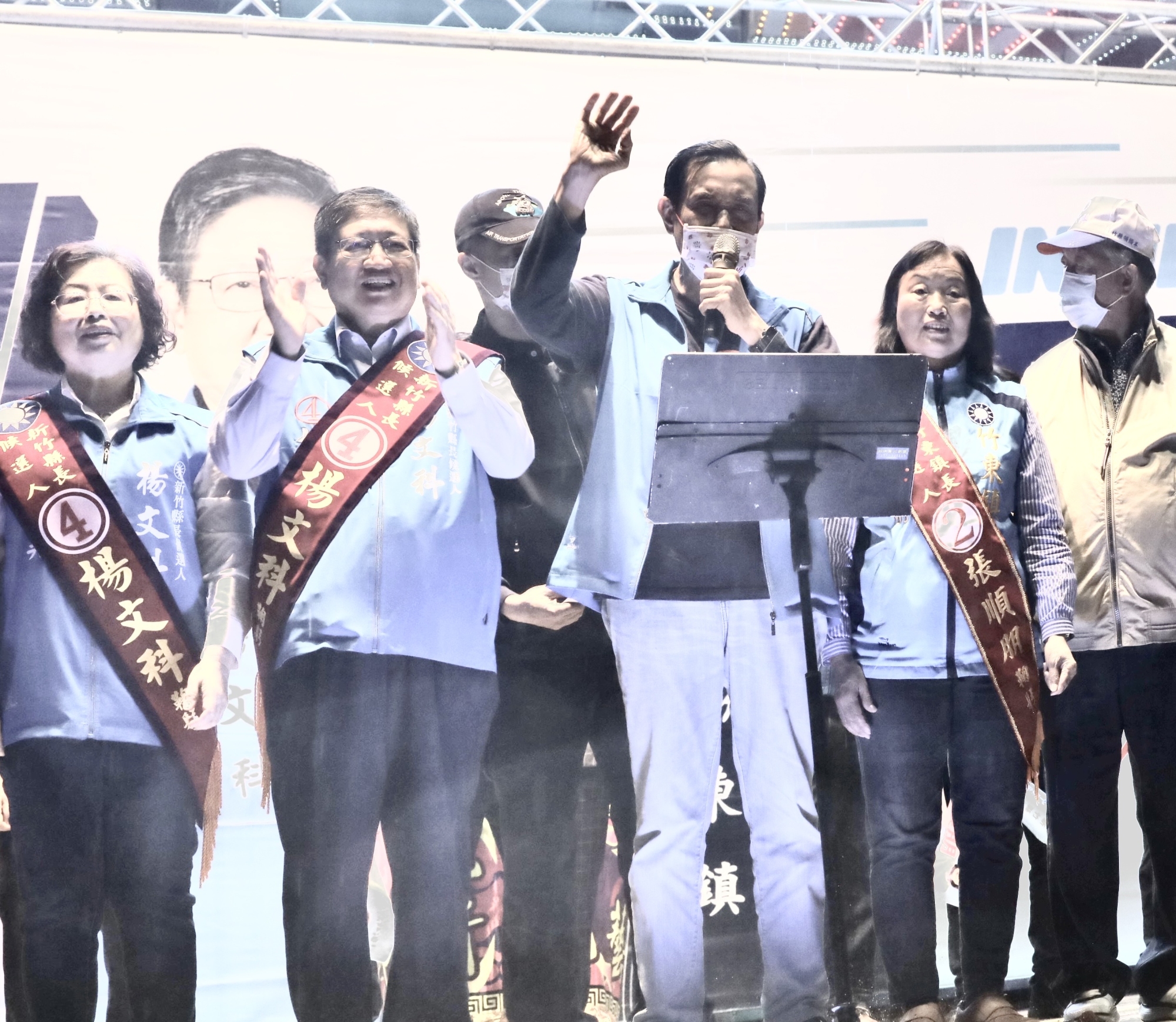 楊文科也為張順朋、國民黨新竹縣議員候選人馮守亮、上官秋燕、彭余美玲、黃豪杰拉票,呼籲鄉親要讓國民黨全壘打,上下一條心為民眾服務。前新竹縣長邱鏡淳、前立委徐欣瑩等人均出席選前之夜,展現國民黨上下一條心的團結氣勢。