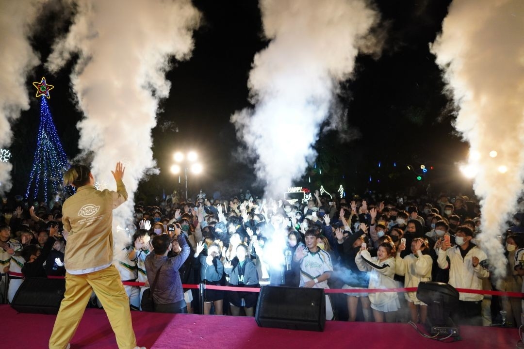 中華大學學生會昨(30)晚舉行「點亮希望之燈」聖誕晚會,邀請到歌手白安、柏霖PoLin、陳祈玥、李杰明和陳華接力演唱,還有競技啦啦隊、火舞社和街舞社帶來精彩表演,現場並提供總價逾8萬元的70項摸彩品大方送,希望讓全校師生都能揮別過去疫情的陰霾,歡樂迎接2023年新希望。