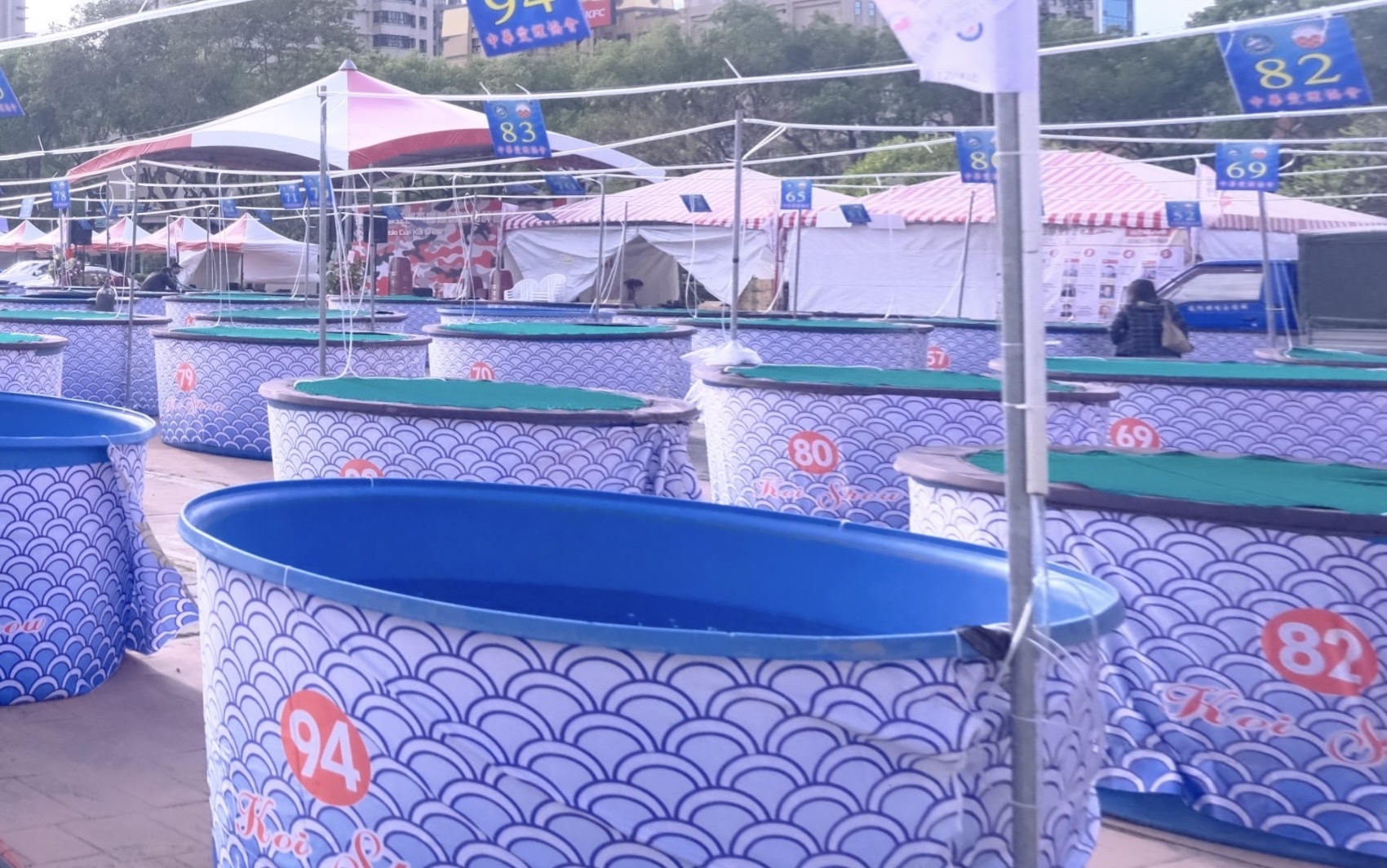 竹縣府前廣場擺設百桶評比水槽提供亞洲盃國際錦鯉品競賽 何高祿攝