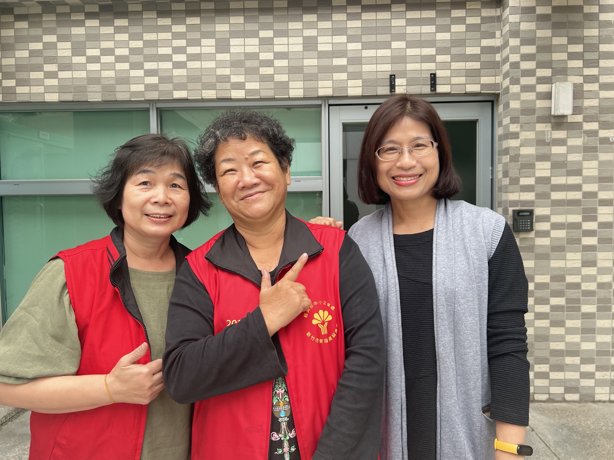 竹市榮指員協進會理事長黃寶雪(中)任滿前和工策會組長劉明珠(右)及該會財務曾清美(左) 開心入鏡 何高祿攝
