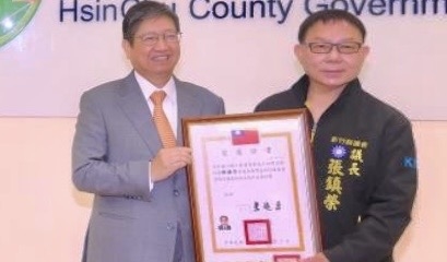 楊文科共勉為竹縣打拼 頒議員鄉鎮市長當選證書