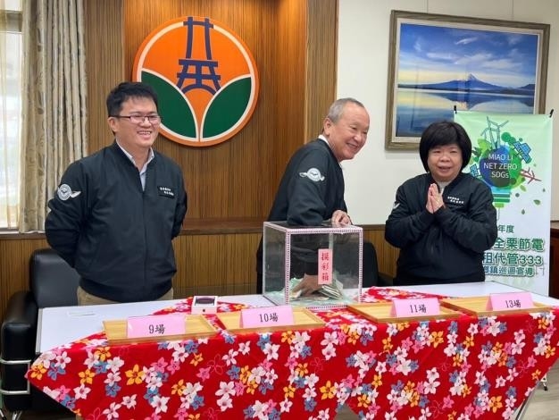 工商發展處詹處長彩蘋在抽獎中表示,這次節電18鄉鎮市巡迴活動,秉持著徐縣長「創新、求變、接地氣」的理念,首創結合了包租代管及客語推廣,利用寓教於樂的方式,將「如何能更節電的手法」、「包租代管333政策」、及「大家來講客語」融入生活當中。18場參與人數達到2,950人次,是我們既定目標的約3.3倍,真的非常感謝各位鄉親跟著我們一起18場跑透透,也因為有苗栗鄉親的大力支持與鼓勵,讓縣府團隊更有動力持續為節能減碳盡最大努力。