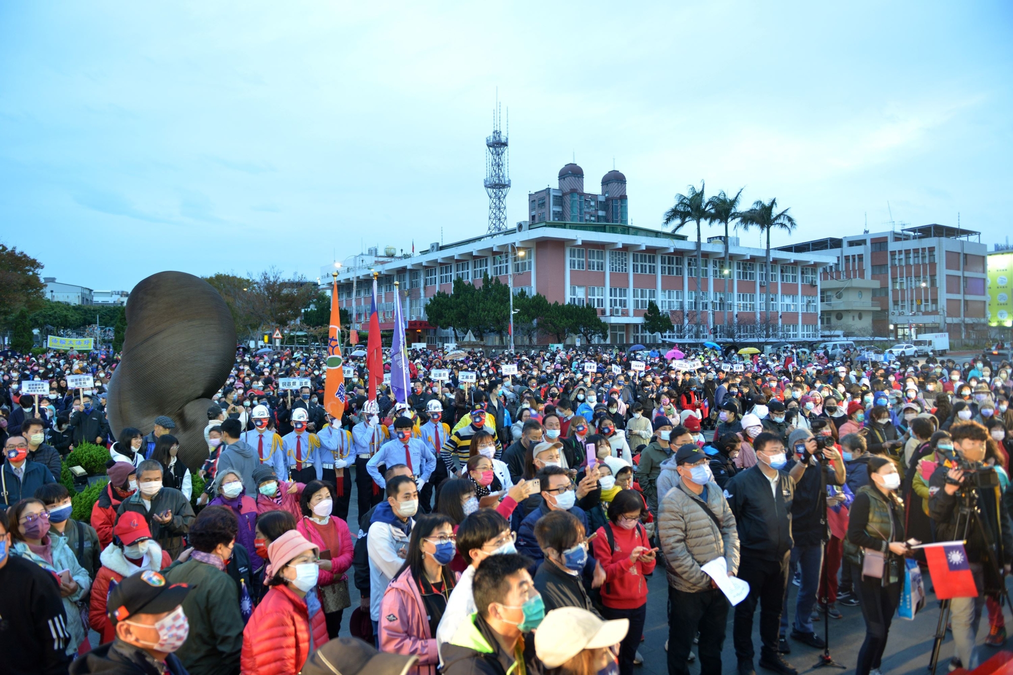 清晨苗栗天空飄著細雨,上千人熱情不減和前縣長徐耀昌、立委陳超明、立委徐志榮夫人王慧珍,縣議會議長李文斌、副議長張淑芬及多名縣議員、鄉鎮市長、各級民意代表、工商團體代表和各校學生出席升旗典禮。
