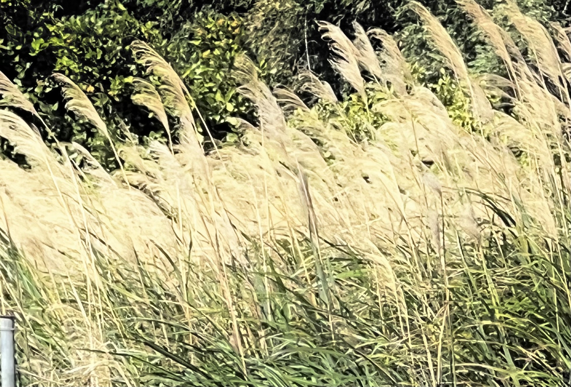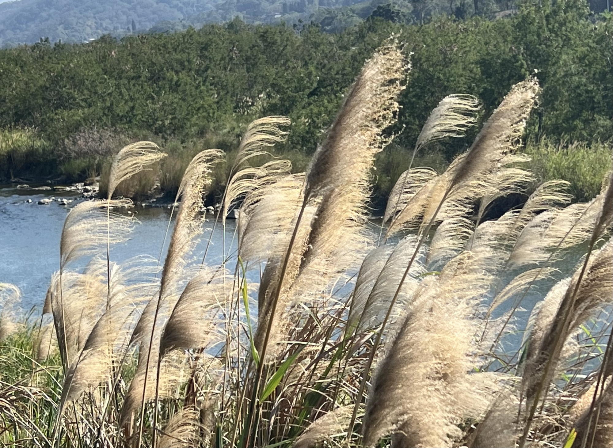 現今桃竹苗台地上小山丘和溪邊坡地、都很容易見到迎風招展的芒花,或單、或雙、或叢聚升出花枝,皆已盡善盡美達到引人入勝顛峰,漸漸邁向謝幕時刻,在芒草花美的呈現打烊前夕,懷念原野風情芒花相伴舊情,可以順著台三線分支鄉間道路,投身芒花世界,享受綠草香和茫茫放空心扉。