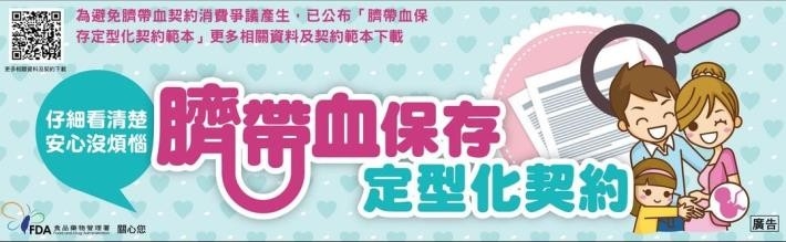 為保障消費者的權益及督促業者履行義務,衛生福利部於100年9月8日頒訂「臍帶血保存定型化契約應記載及不得記載事項」,並於101年7月24日公告修正「臍帶血保存定型化契約範本」,規定業者不得以任何形式或廣告保證,保存之臍帶血在現在或未來可以治療任何遺傳性、血液及其他疾病或不可預期之醫療效用,且需確保廣告的真實性,對產婦所負之義務不得低於廣告內容。