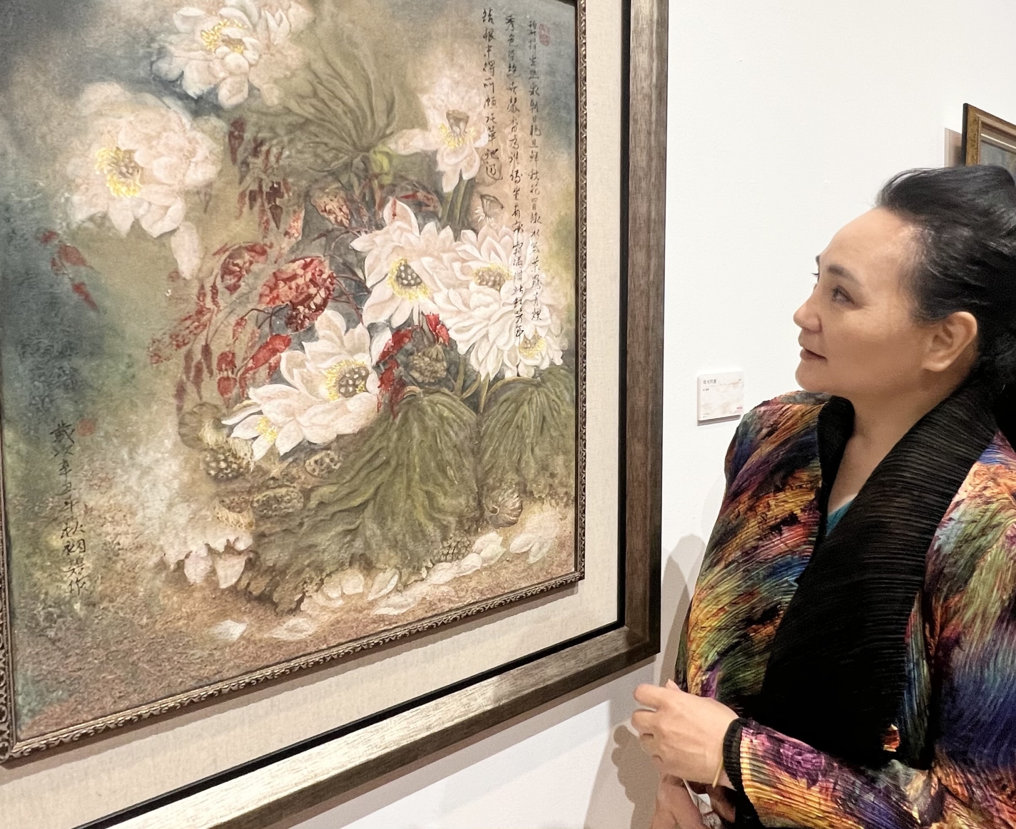 新竹河畔畫會理事長彭碧鈴,在風城美展的膠彩作品 何高祿攝