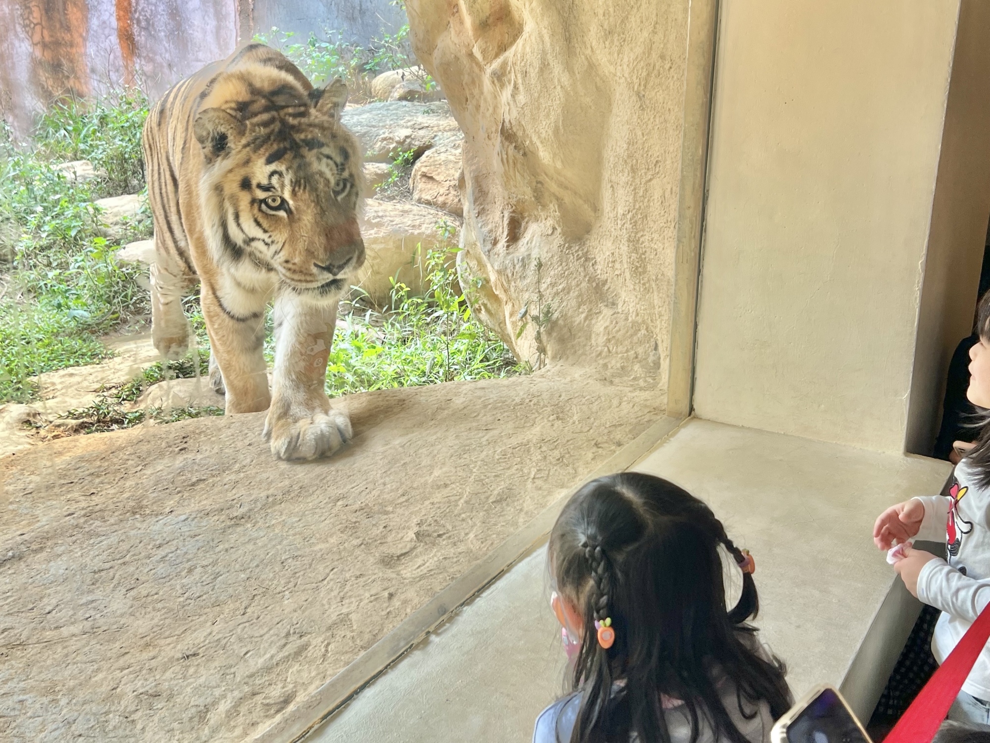 透過大玻璃窗,老虎近在遊客身旁 何高祿攝