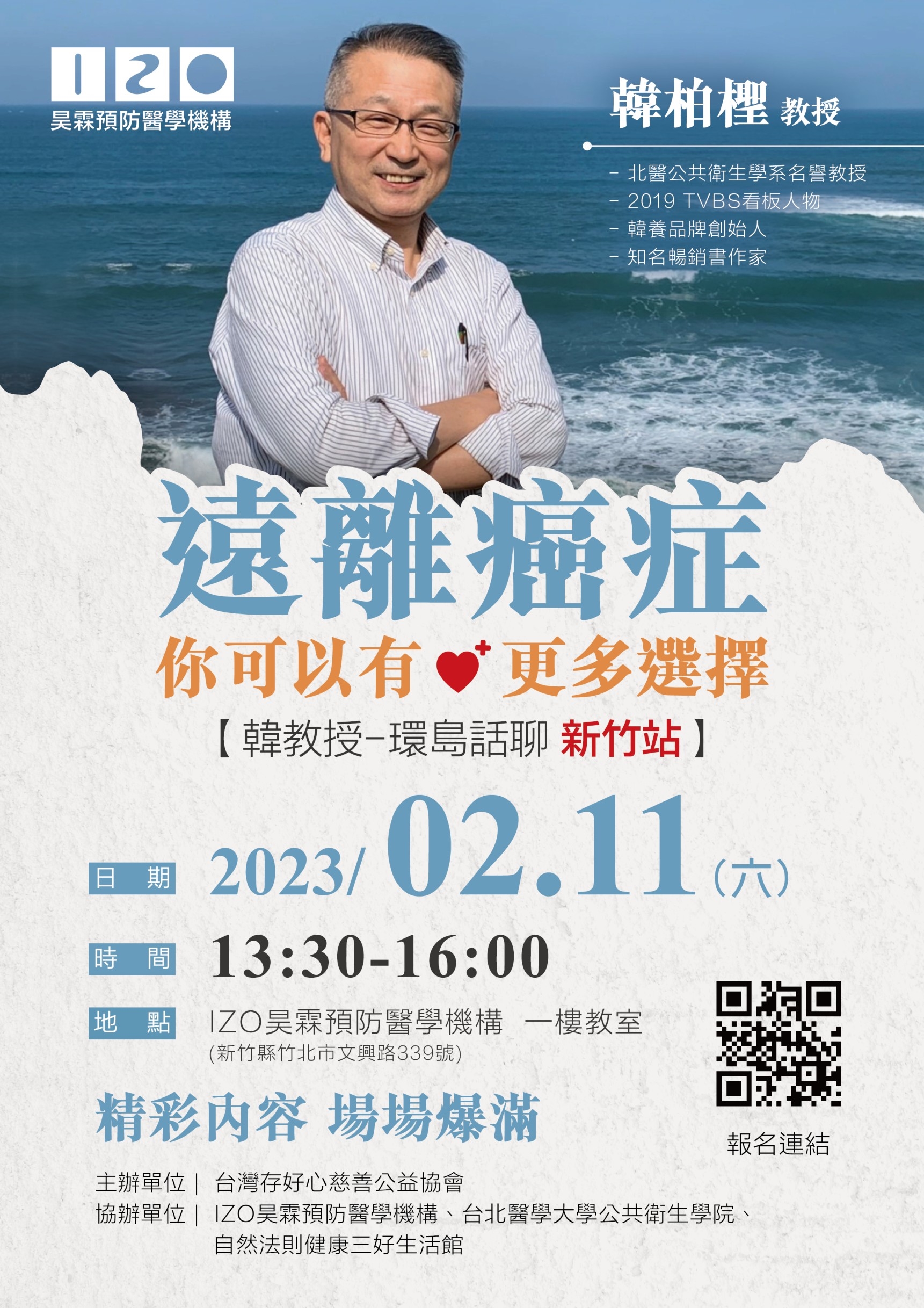這次的環台「話」療講座新竹場,目前除了提供現場參加民眾完全免費入場外,也提供高級下午茶點,以期所有韓教授的粉絲能夠在更加舒適與享受的環境,也充分顯示謝昌辰執行長對於癌症預防醫學的重視,在癌友的照護與生活品質提升上,就讓大家在這次的講座中體會,那份輕鬆養生、倍感尊榮的放鬆與享受,證明機構的用心以及預防醫學對健康與幸福的堅持。