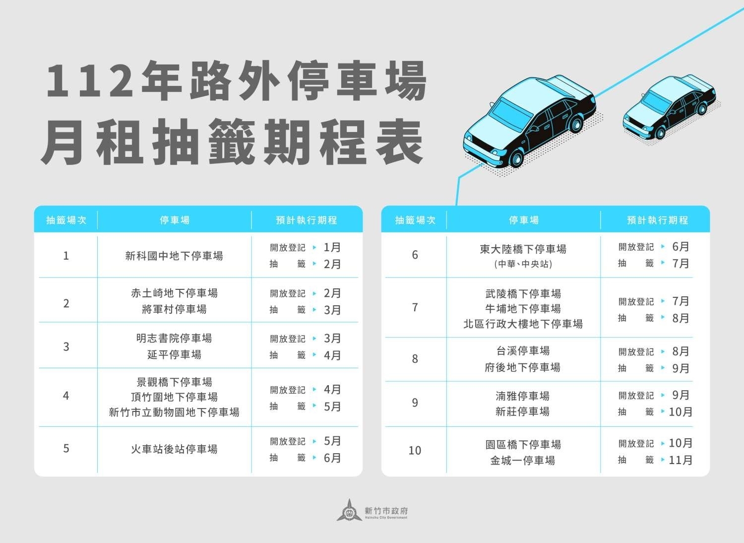 112年新竹市路外停車場月租抽籤期程表 何高祿編製
