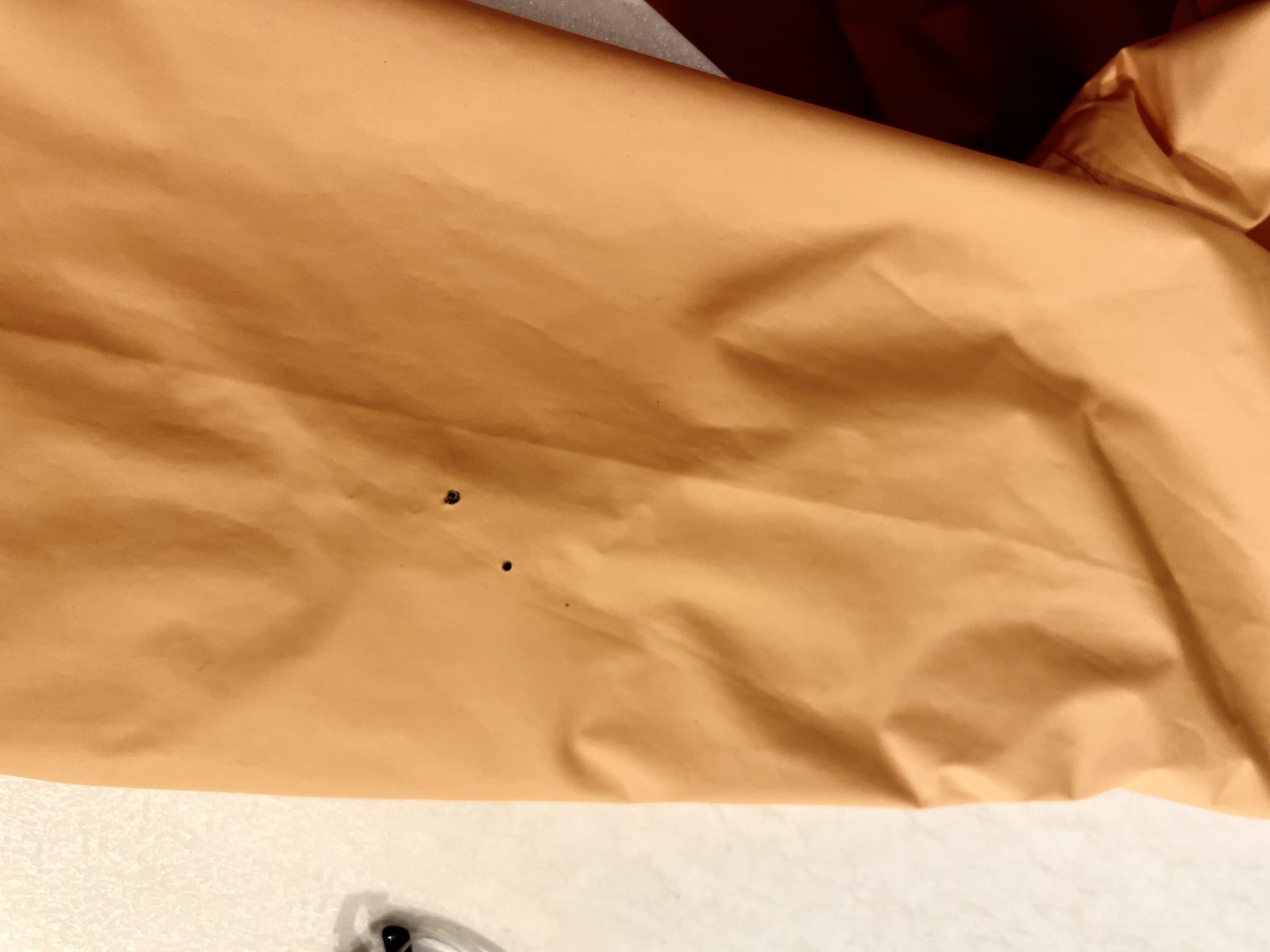 衣服遭鞭炮火星燒出氣孔,放大看有點恐佈 何高祿攝