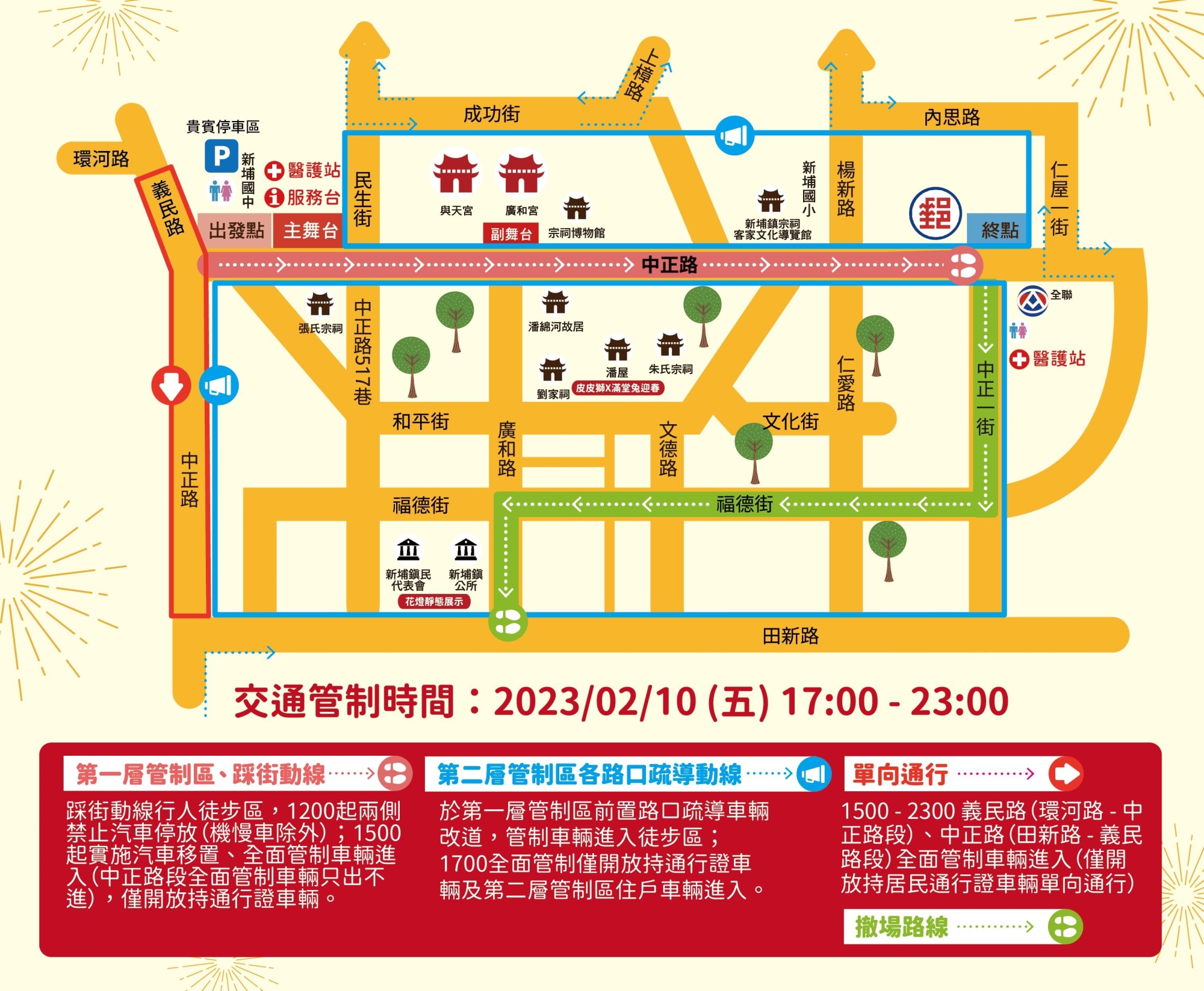 新埔花燈迎天穿今天下午三時交管 圖 何高祿編製