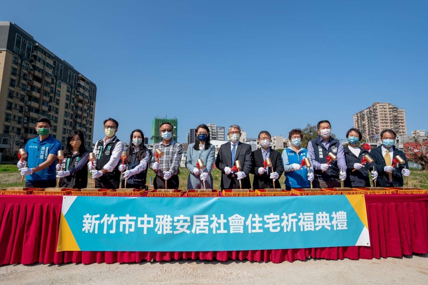 竹市首座社會住宅,「中雅安居」影子都還沒有現身,已經滾滾熱鬧打知名度,去年轟轟烈烈用金鏟開工,昨天又大陣仗用金鎚祈福,開工祈福中間,還有一段兩度開工浪費公帑唇槍舌戰,讓這座社會宅未登場先轟動。
