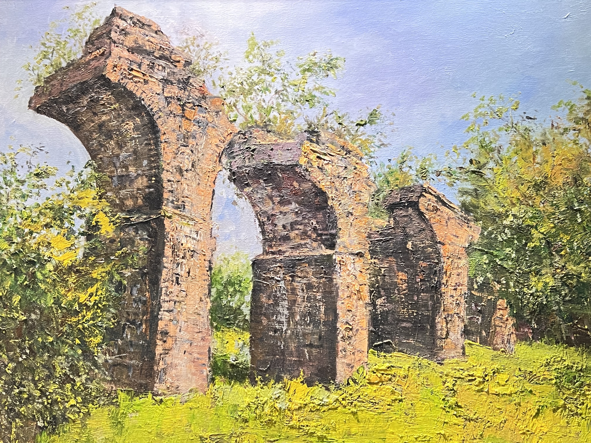 三義舊鐵路觀光區域內龍騰斷橋已成畫作要角 郭秀珏畫作何高祿攝