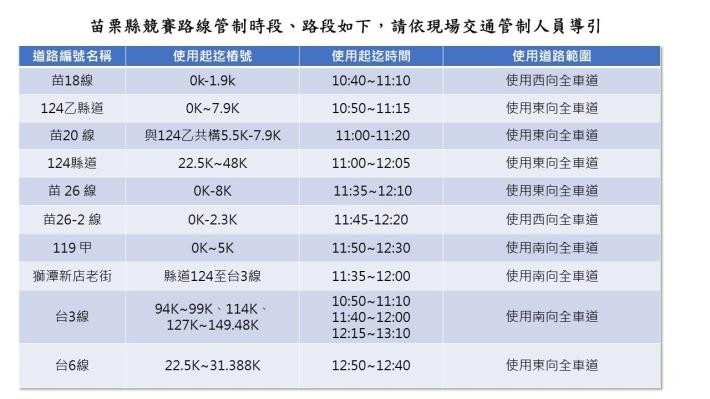 國際自由車環台賽苗栗浪漫台3線交管資訊 何高祿編製