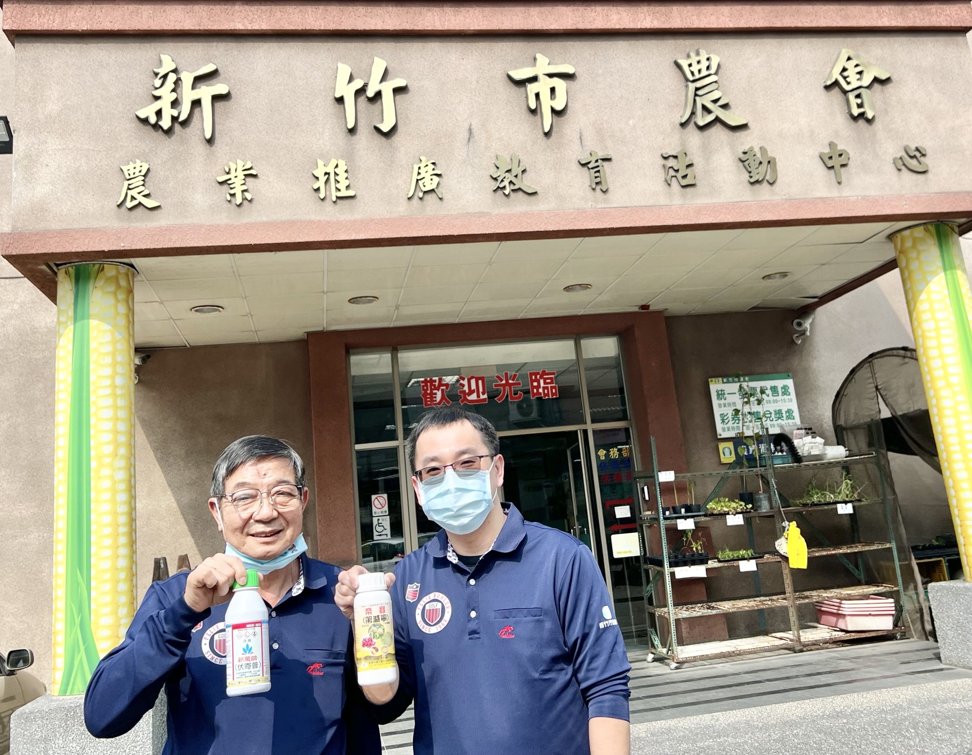 竹市農會總幹事鍾祥銘(左)呼籲農友,回收藥空瓶維護環境生態 何高祿攝