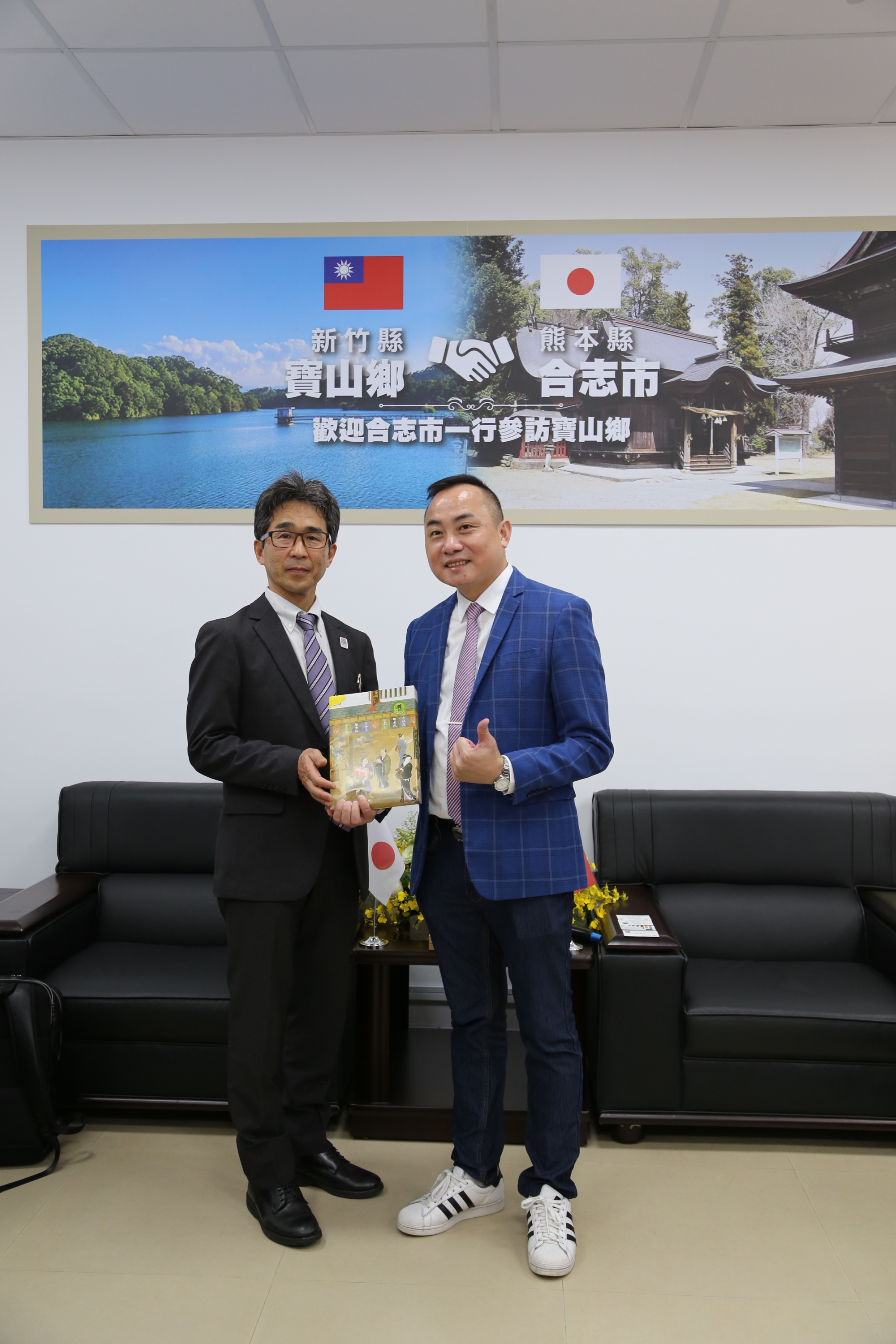 二十四日新竹縣寶山鄉公所,來了一團日本熊本縣訪客,熊本縣合志市政廳公室長吉村幸一等率領參訪團,對寶山鄉施政讚譽不已,一個山城可以規劃萬種風情,值得學習效法。