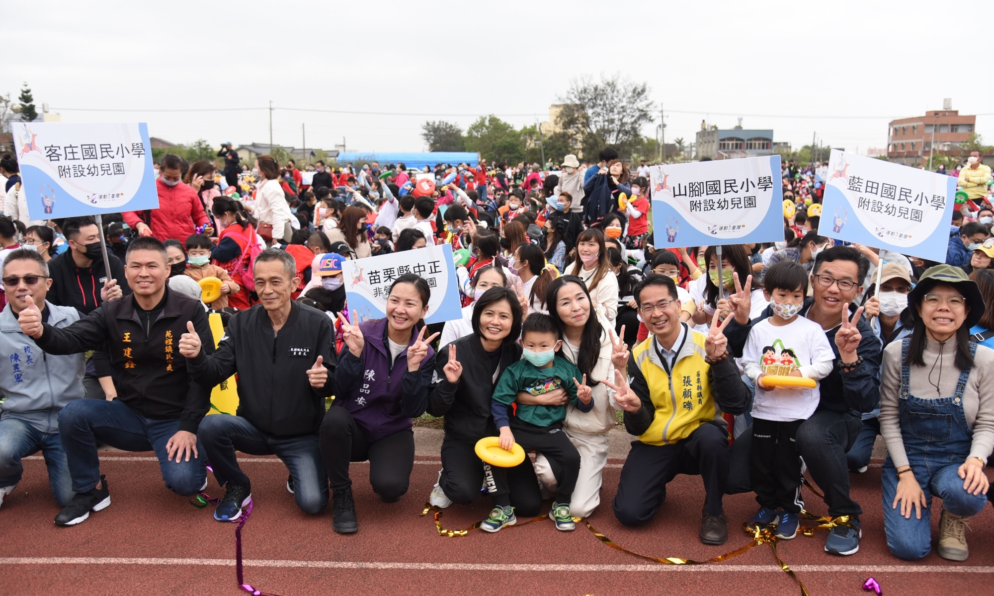縣府為增進親子關係並建立兒童良好的運動習慣,112年度規畫了4場次的大型親子活動,8日上午在苑裡鎮體育場舉行舉行第2場次親子運動嘉年華,天公作美下,有來自通霄、苑裡、三義及西湖4鄉鎮近800個家庭參加,縣長鍾東錦夫人陳美琦與來賓也進場同樂,展現柔性親和力,親子在各項活動中大手牽小手賣力演出,會場洋溢溫馨、歡樂氣氛。