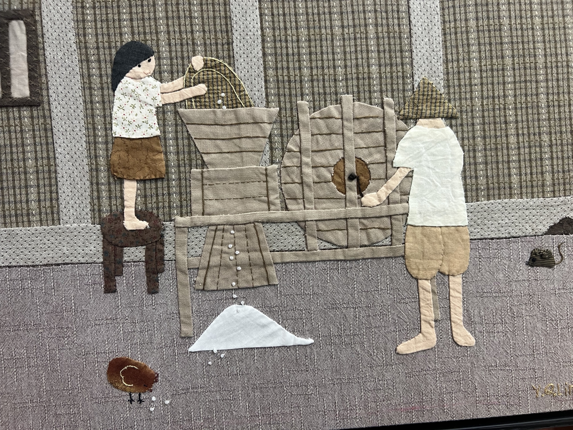 嚴格說起林雨錡進入拼布領域又沒有十年、八年,時間並不長,但是在創作過程中要從基本功突然躍起到高級層次是有一些難度,尤其縫於小於一公分創作成品,但是興趣喜歡的毅力往往會出現奇異爆發能量,盡管常常拆拆、縫縫,過程比較磨人,尤其加上複合媒材在布繪上面,要多重細心琢磨,所以常常一件作品拖到兩、三個月才會完成。