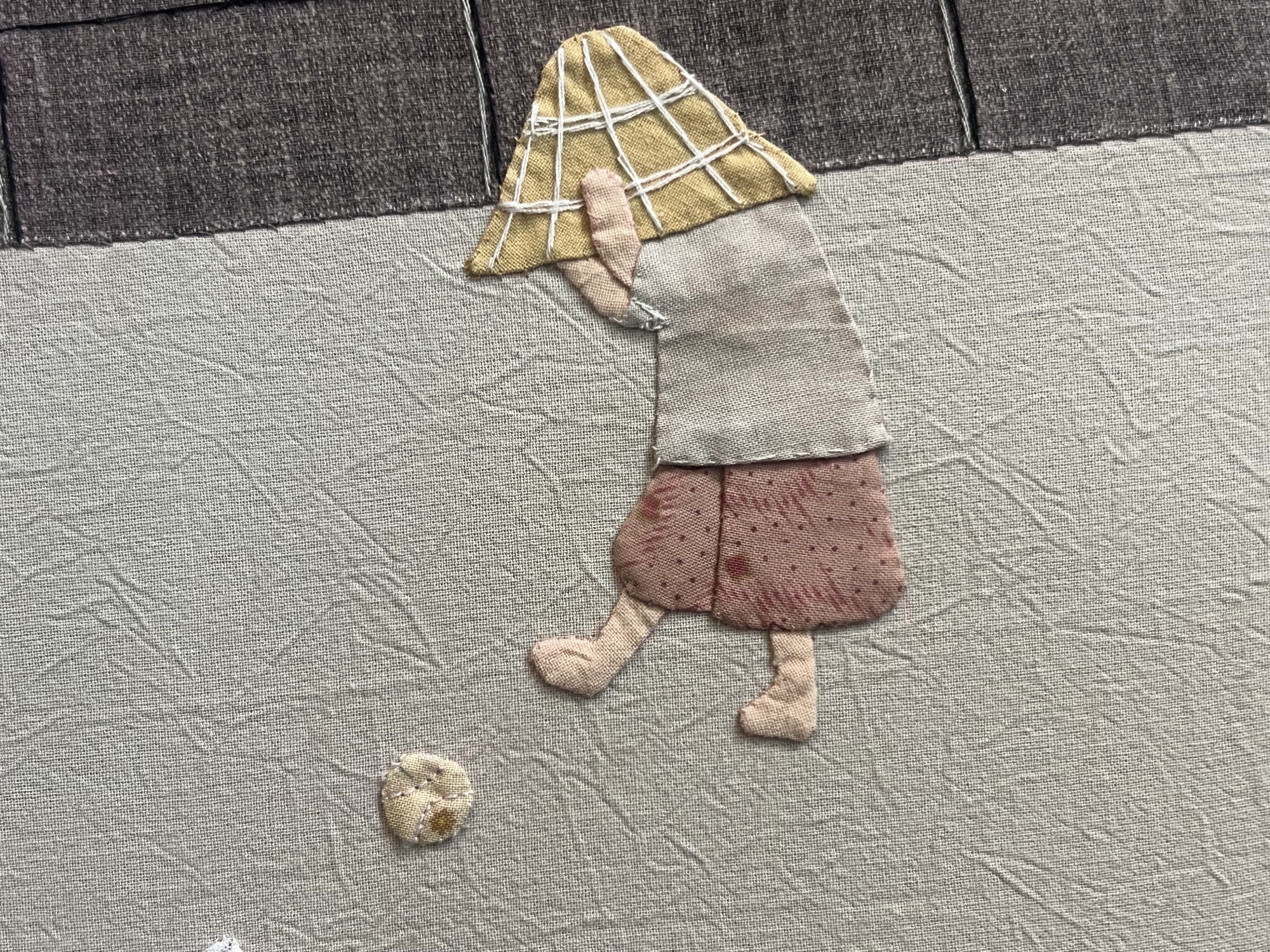 創作拼布藝術,一針一線往心窩裡穿梭,沒有深刻豐厚情感,拼不出什麼名堂。湖畔畫會拼布藝術家林雨錡,把隔代撫山野養童年拼成了藝術作品,譜出時光隧道遐想樂曲。