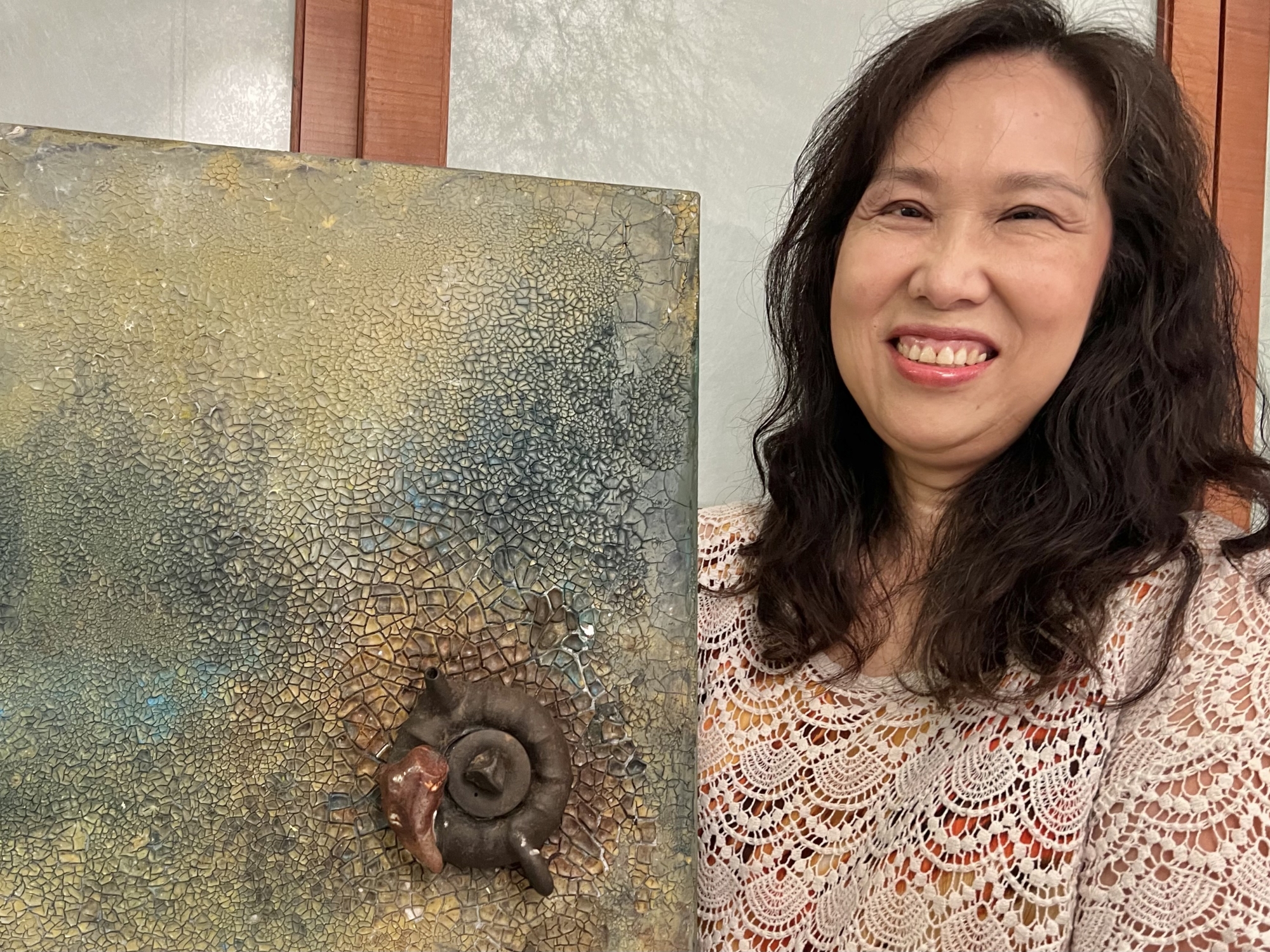 趙佑平在陶藝創作同樣有突出表現,獲獎、個展頻繁,希望創作中除了柔美情感,更期盼有3D,5G科技藝術,甚至植入晶片,串連宇宙日月光華和大海珊瑚之美融合在科技藝術。