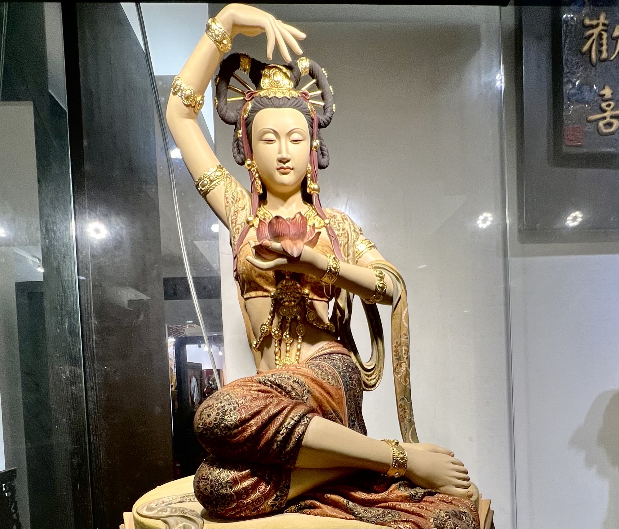 陳慧芬從小與觀世音菩薩結緣甚深師,多年前因雕塑一尊「水月觀音」而留下難忘的印象,埋首創作「自在觀音」、「如意觀音」、「九蓮觀音」等系列觀音作品,藉由妝點佛像.堅定以傳承為目標,積極推動佛像彩繪必須傳承,以藝術文化、宗教形式結合,減少工藝工匠斷層及產業外移,願能以此人生志業結合公共利益理念,讓在地將勢微佛像彩繪樹再度熠熠發光。