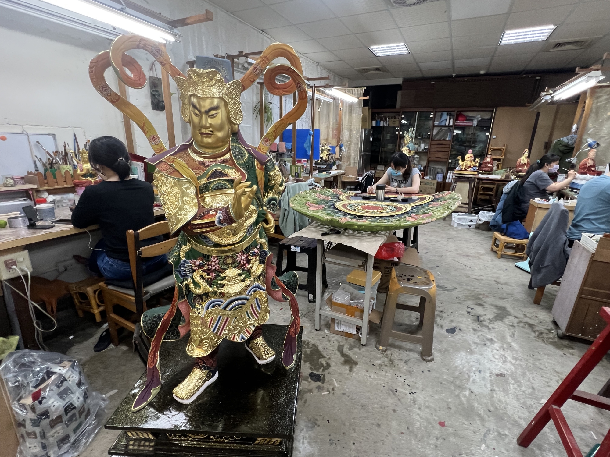 湖畔畫會顧問陳慧芬慈眉善目,見人總是和顏悅色點頭示好,一股讓人樂於親近神韻。她在神像工藝世界半個世紀,由各式神像圖案設計、泥塑、拷膜、修光、雕刻成品、白胚打底、打磨、彩繪成品,無一不曉、無一不精,國內外獲得金牌獎無數,被遴選為國家級工藝師。