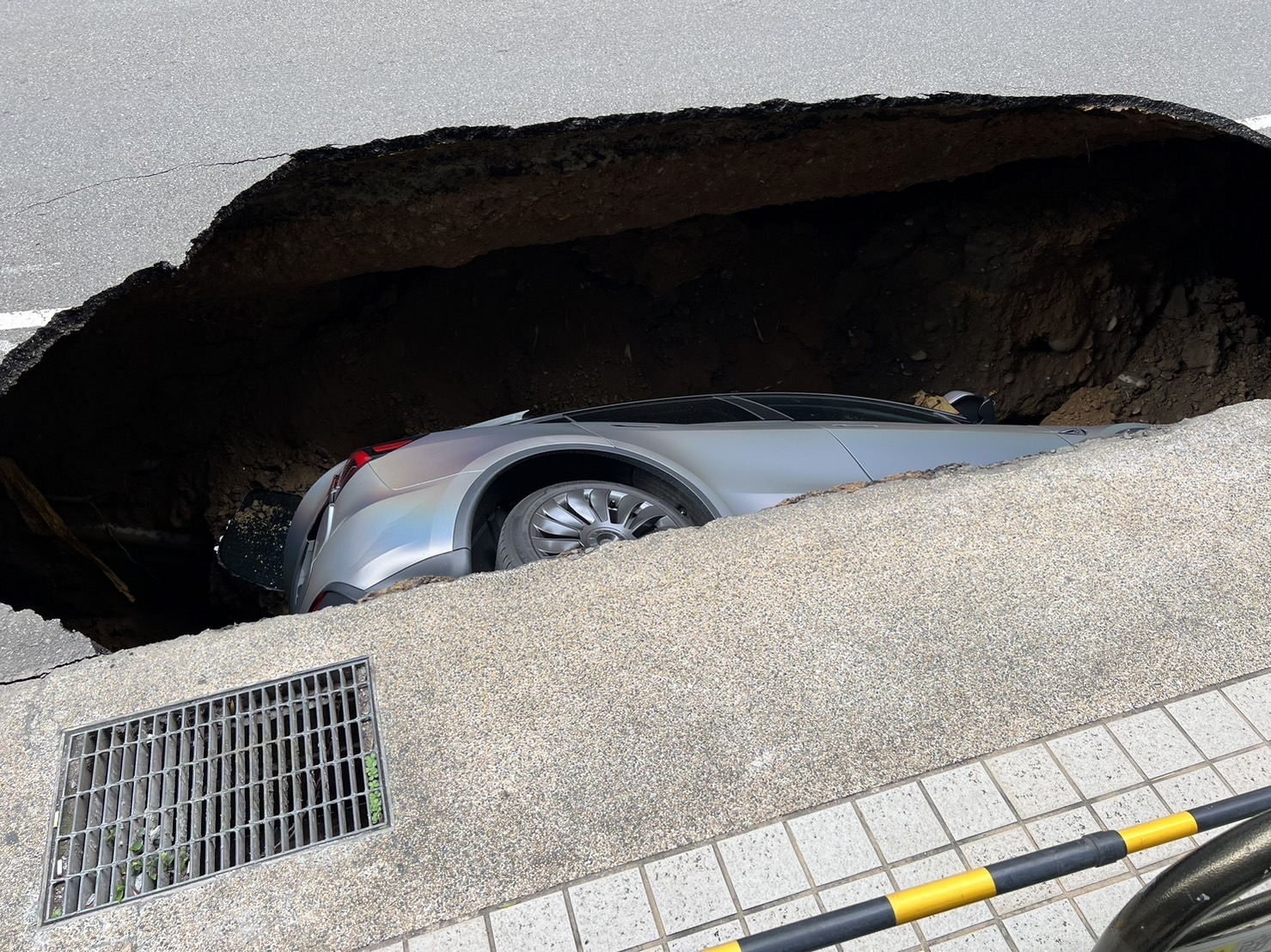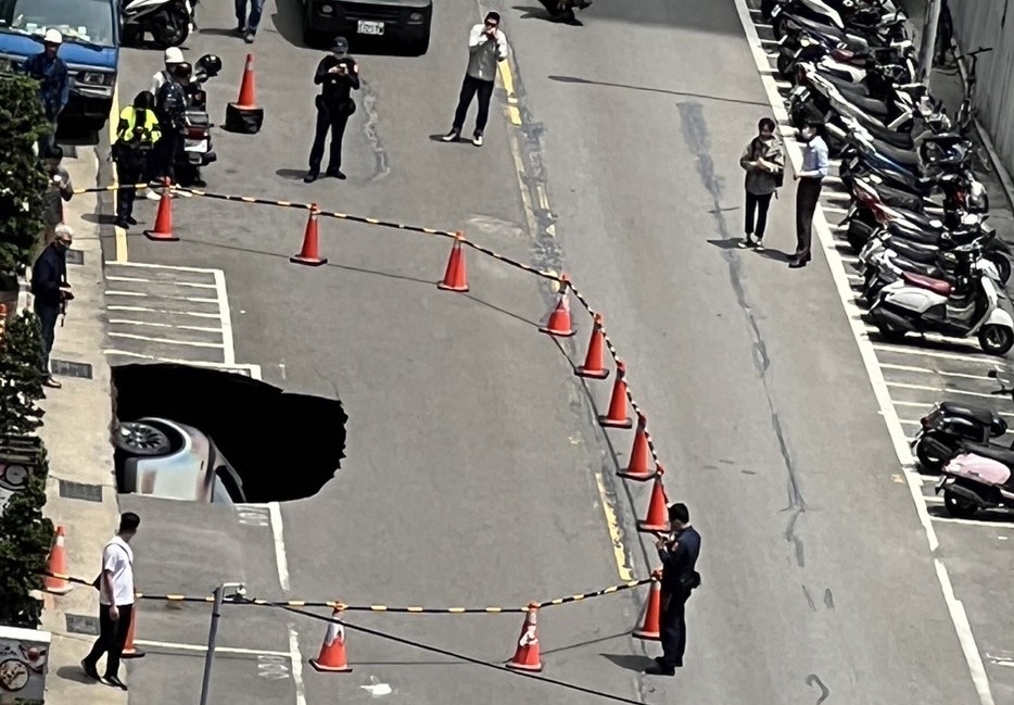 竹縣竹北市莊敬六街27日上午驚傳「天坑」,一輛停放在路邊停車格內的特斯拉應聲摔入坑中,彷彿被地表吞噬;由於一旁的建案「豐采520」開工以來,過去就曾經在20公尺外的勝利二街發生過4次塌陷事件,此次事故懷疑也與建案有關。