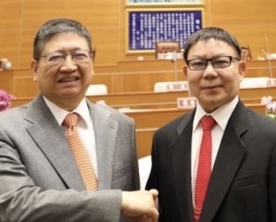 楊文科(左)張鎮榮期盼府會和諧,共創縣民福祉。 何高祿攝