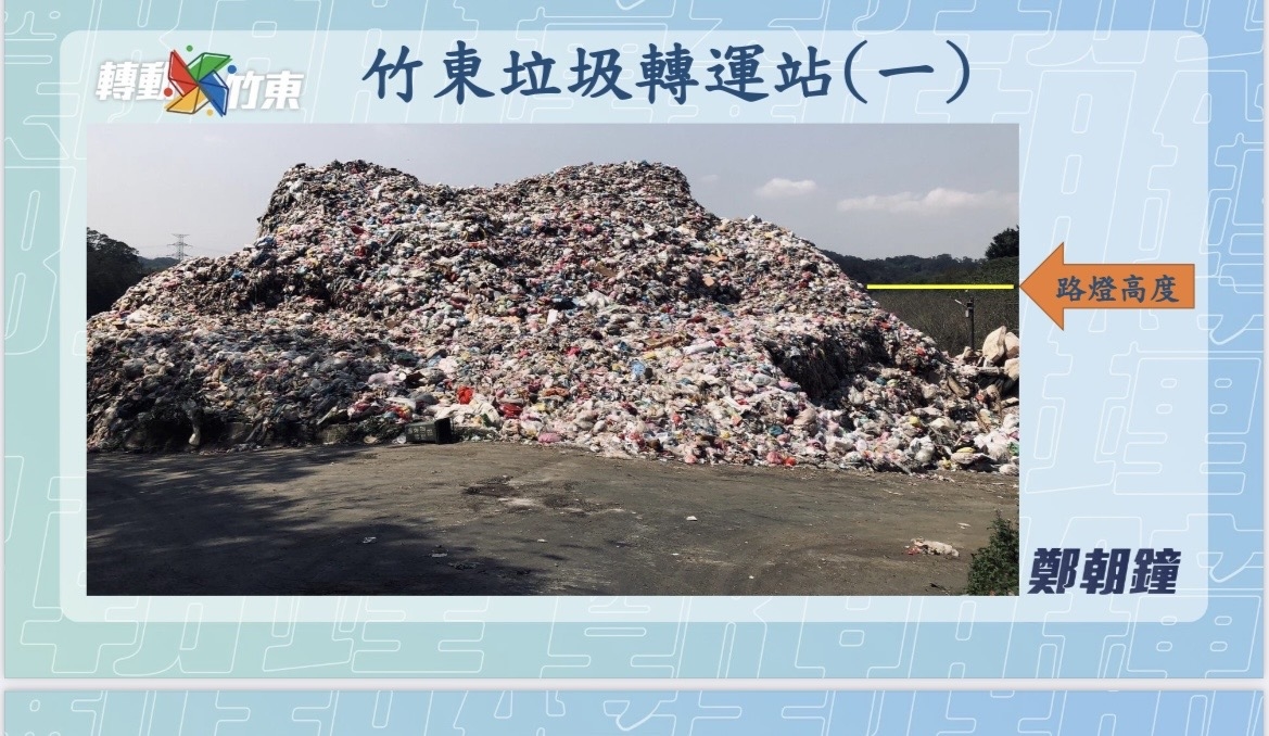 鄭朝鐘在議會中詢問竹東垃圾暫置場的堆置狀況,肯定楊文科縣長在過去3年一度清除,不過現今又堆置到8000多噸,且因暫置場就鄰近水源地,近日汛期將近,鄭朝鐘詢問環保局清運進度、垃圾處理狀況。