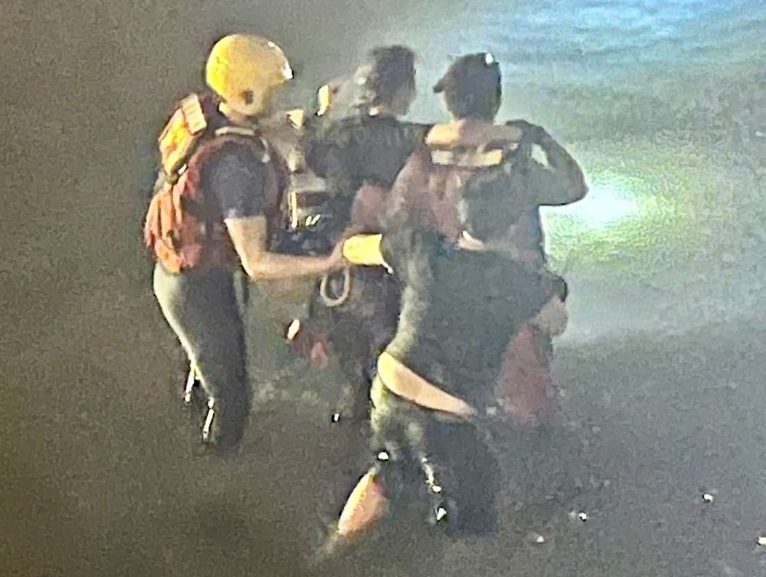竹北分隊警消表示,溪水深度到膝蓋左右沒有危險之虞,因傷者體力不支有失溫情況,救難人員先至溪底給傷者魚雷浮標救生衣著穿,保護安全攙扶至牆邊,再利用美式梯架設將傷者拖困。