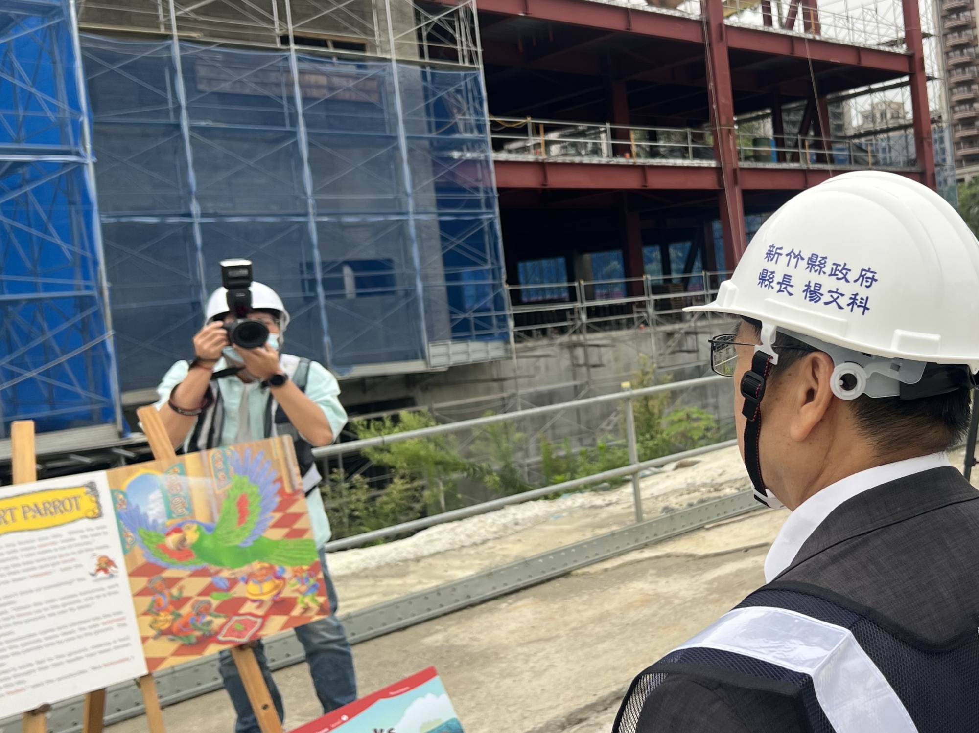 竹縣以文化、科技、智慧城為願景,為提供優質閱讀環境和公共使用空間,縣府團隊爭取教育部補助並自籌款項,於臨自強三路及東興圳水岸綠地基地,規劃興建「新竹縣立總圖書館」,本案新建工程進行結構體工程施作中,室內裝修工程設計同步進入細部設計階段,新竹縣長楊文科5月24日特前往總圖新建基地視察工程進度,期勉總圖工程如期如質進行。