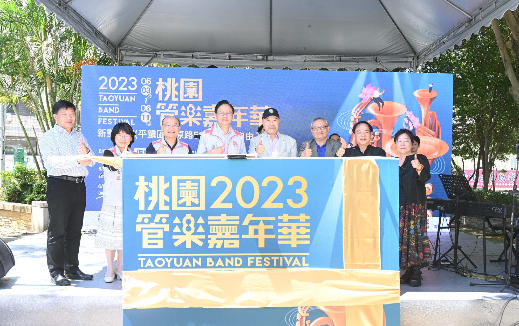 一年一度管樂盛典「2023桃園管樂嘉年華」,將於6/3-6/11於平鎮新勢公園登場,桃園市長張善政今29日下午於文化局戶外廣場,出席「2023桃園管樂嘉年華」記者會。