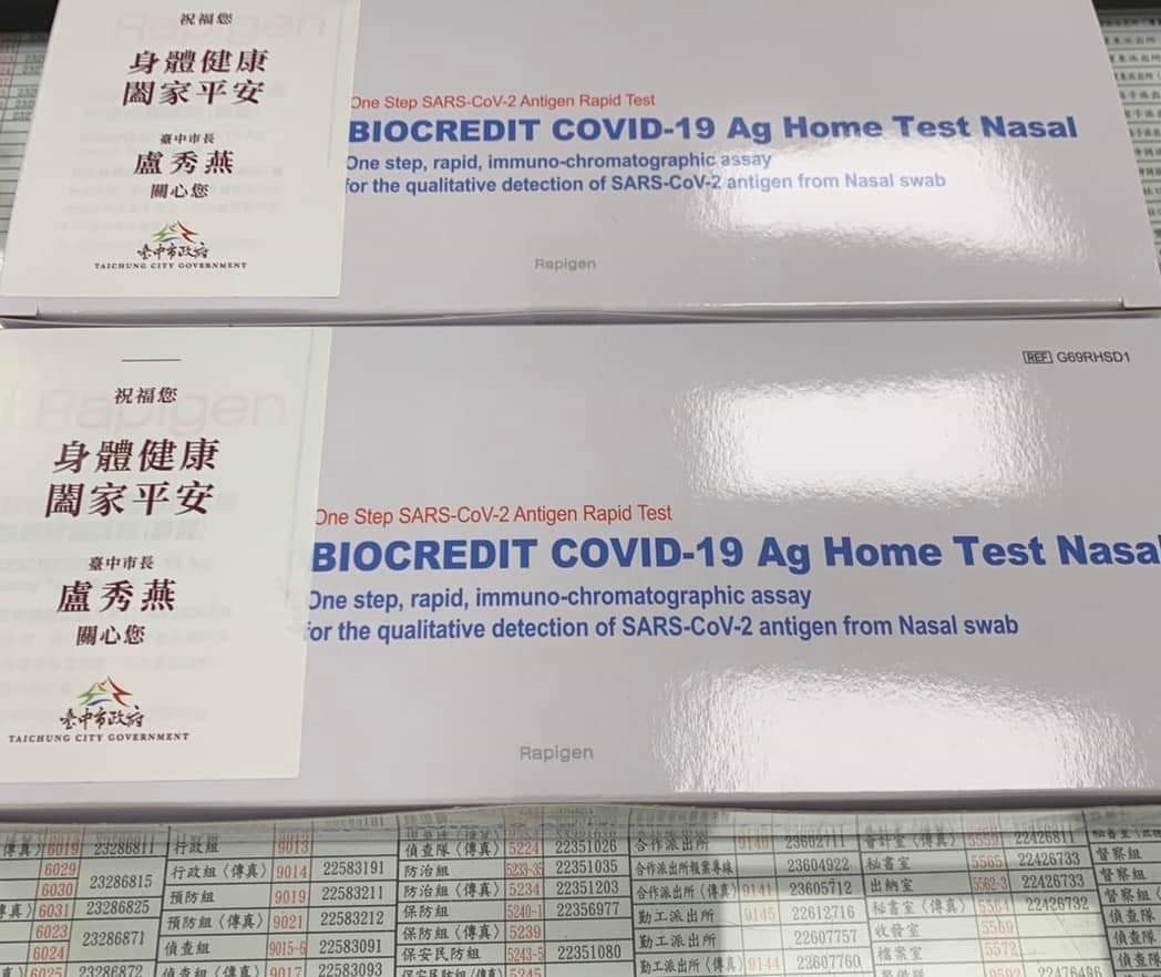 [記者劉韋呈/台中報導]民進黨台中市長參選人蔡其昌發言人陳世凱在臉書貼文,他收到很多第一線人員投訴,市長盧秀燕將送給民眾的快篩試劑都貼上「盧秀燕」的貼紙,簡直把人民公帑運用到最極致。市府回應表示,這次寄發的快篩試劑都是台中市政府購買配發,其他縣市也有類似措施。